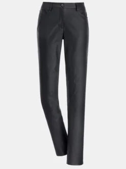 Modische Leder-Optik: Hose in beschichteter Qualität. 4-Pocket-Form. Gürtelschlaufen. Fußweite ca. 34 cm.