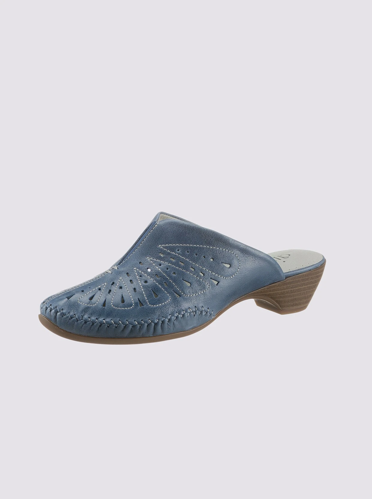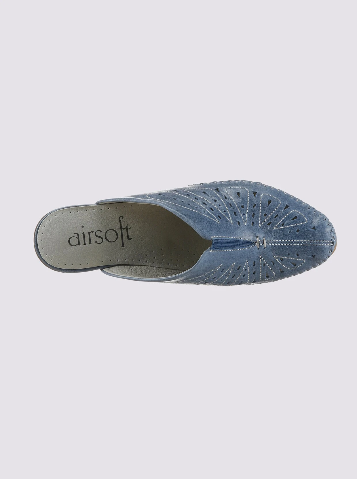 Sommerliches Laufvergnügen verspricht dieser federleichte Sabot von Airsoft. Das Lochmuster wirkt dekorativ und ist schön luftig. Aus Glattleder hochwertig von Hand genäht. Mit Gummizug und atmungsaktiver Innenaustattung aus Microfaser. Flexible TR-Laufsohle mit ca. 35 mm Absatz. Weite G.