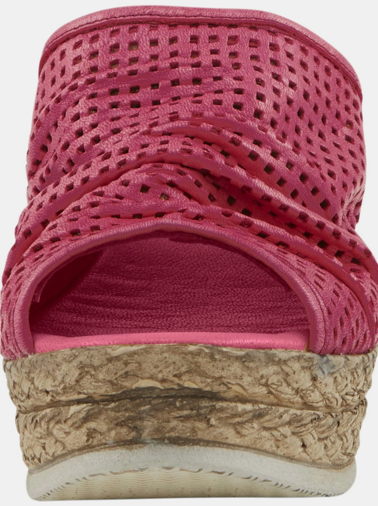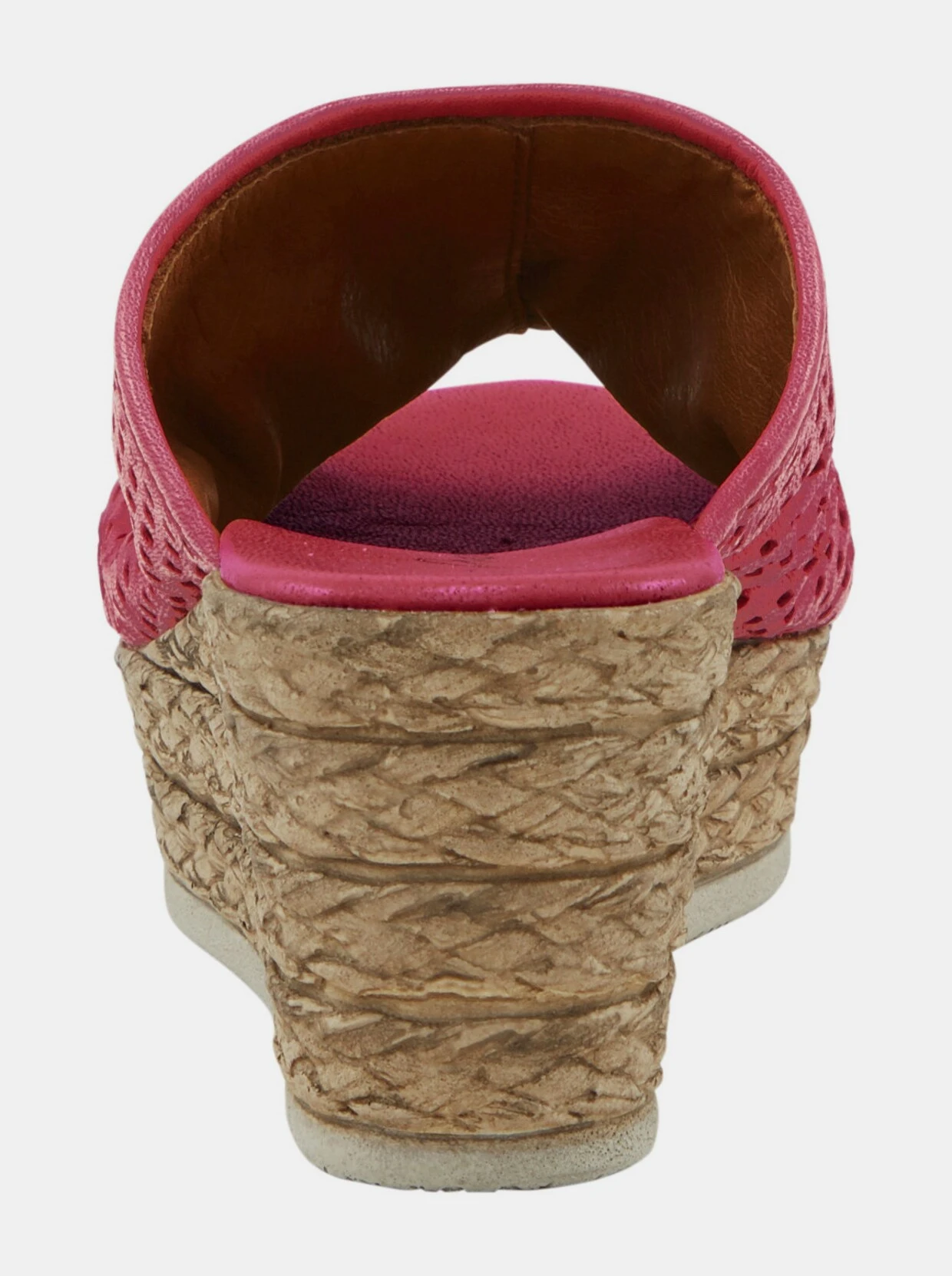 Pantolette Trendaktuell mit Lochmuster und Raffung. Aus Rind-Nappaleder. Weich gepolsterte Innensohle aus Leder. Keilabsatz, Höhe ca. 65 mm.