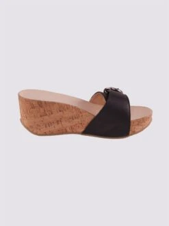 Pantolette Mit dekorativer Dornschließe zur Weitenregulierung und trendstarkem Keilabsatz aus Kork. Handschuhweiches Ziegen-Nappaleder. Futter: Lederimitat, Innensohle Leder. Absatzhöhe ca. 65 mm.