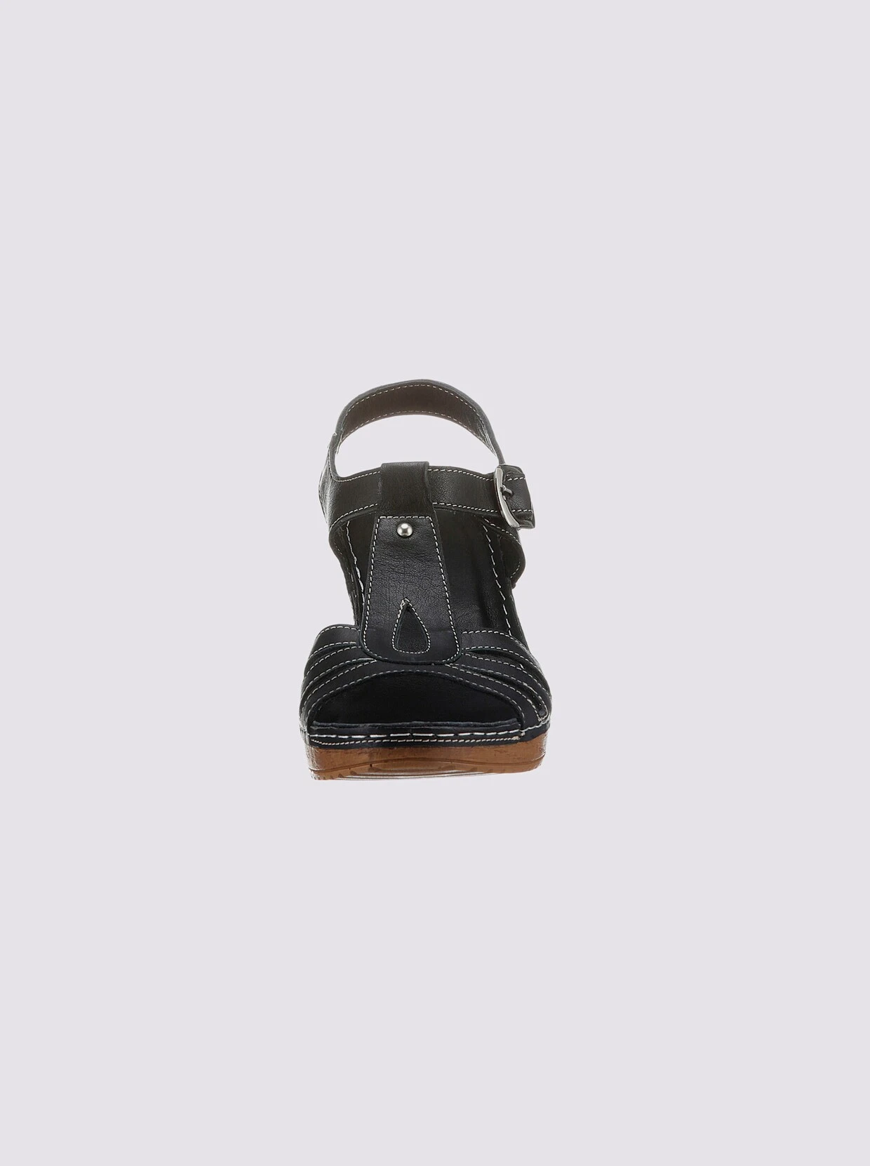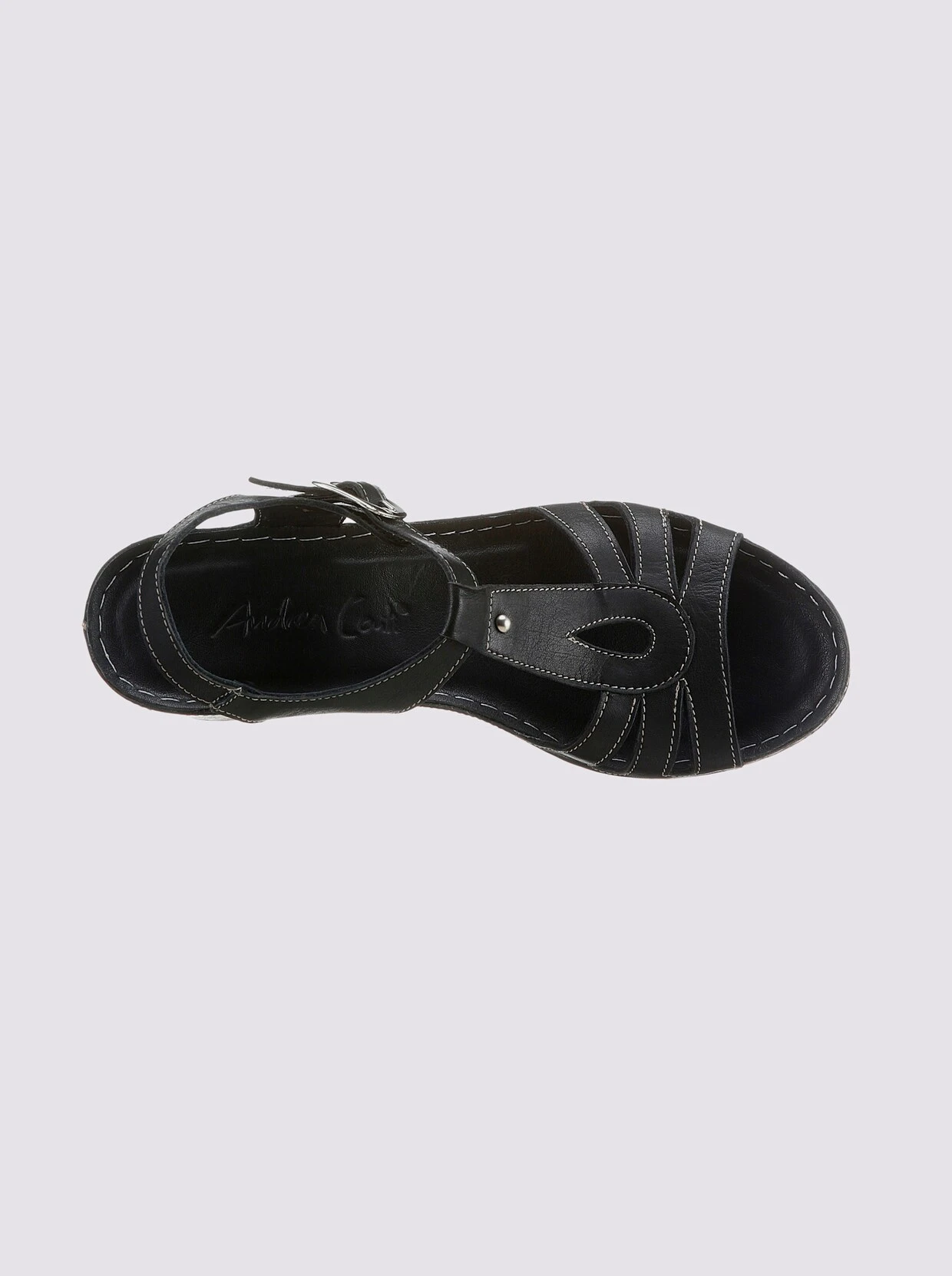 Sie möchten im Sommer auf Wolken laufen? Dann ist die Sandalette von Andrea Conti mit wunderbar weicher Trittdämpfung genau der richtige Schuh für Sie. Obermaterial und Innenausstattung aus Leder. Mit Gummizug und Dornschließe. PU-Laufsohle mit ca. 60 mm Absatz. Weite F.