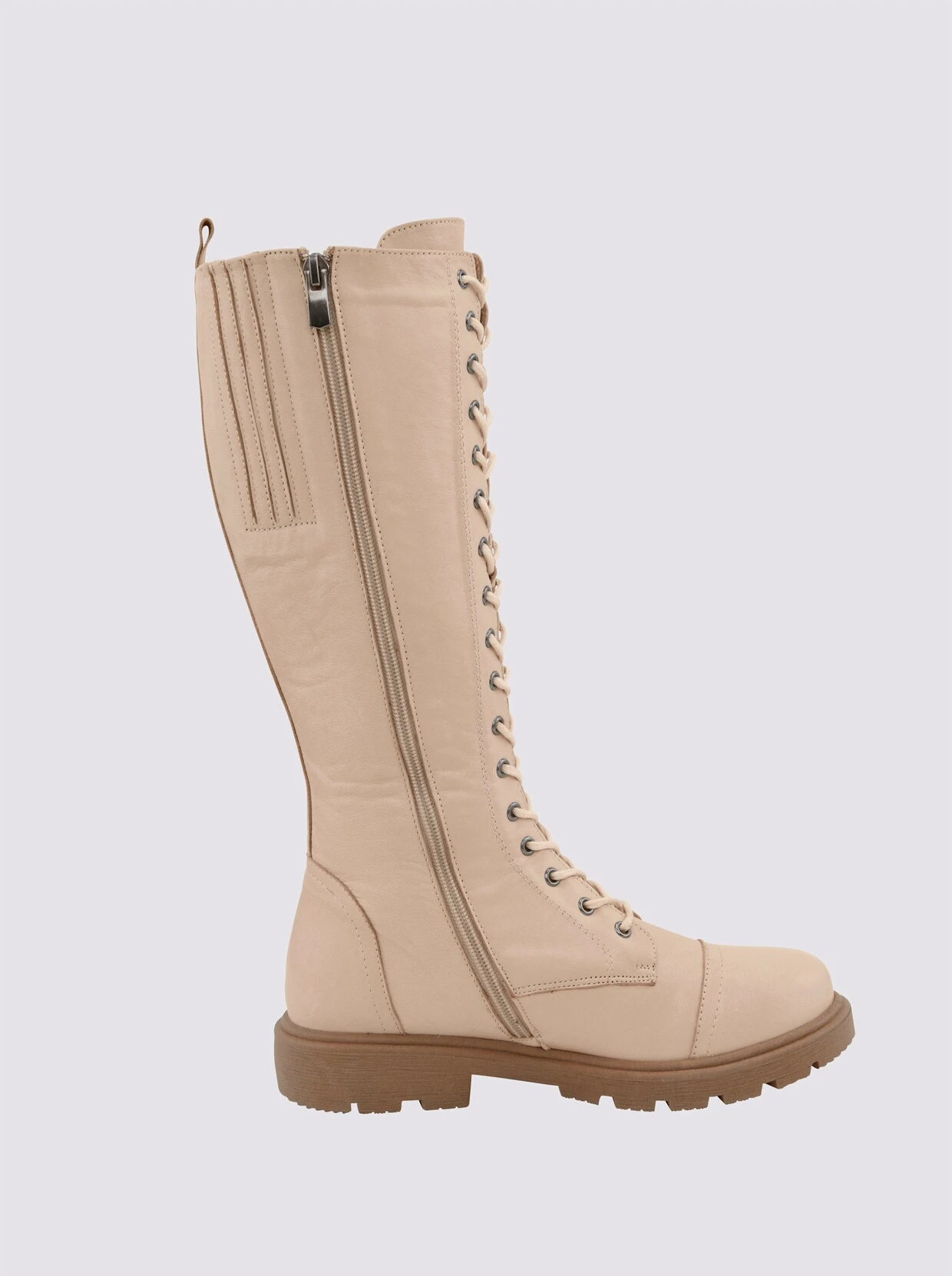 Schnürstiefel Cooler Hingucker aus hochwertigem Rind-Nappaleder. Mit dekorativer Schnürung und Wechselfußbett, zu schließen mit Reißverschluss. Futter: Textil, Innensohle: Leder. Schaft-H/W ca. 36/38 cm. Blockabsatz, Höhe ca. 30 mm.