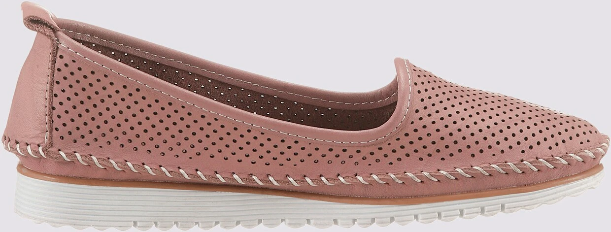 Slipper Für luftig-leichte Auftritte. Angenehm leichte Ware mit Hingucker Lochmuster. 100% Rind-Glattleder. Modische Handnaht entlang der Sohle. Ungefüttert. Mit flexibler Laufsohle. Innensohle: Leder.