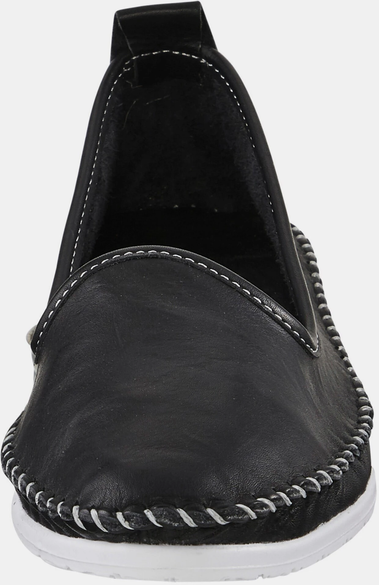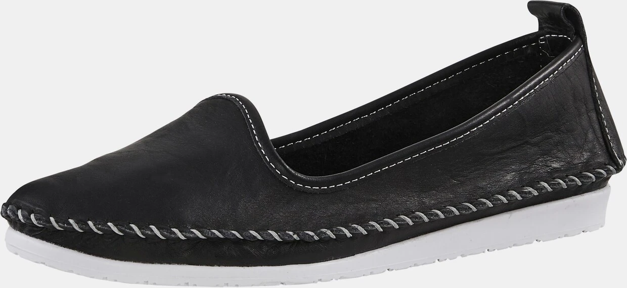 Slipper Weich, leicht und bequem, aus hochwertigem Rind-Nappaleder. Mit attraktiver Mokassin-Naht und offenen Kanten. Innensohle Leder. Flexible Gummi-Laufsohle.