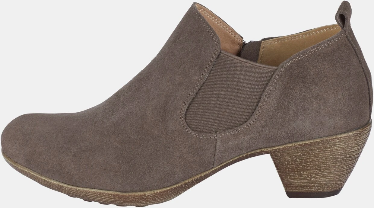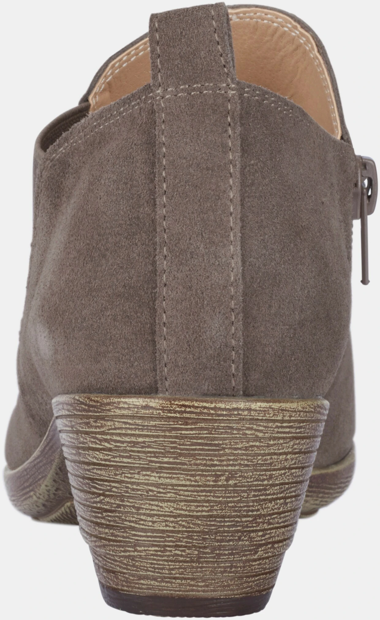 Stiefelette Lässig mit Cowboy-Absatz. Aus hochwertigem Rind-Veloursleder. Mit Elastik-Einsatz für einfachen Einstieg. Futter: Synthetik, Innensohle: Leder. Absatzhöhe ca. 45 mm.