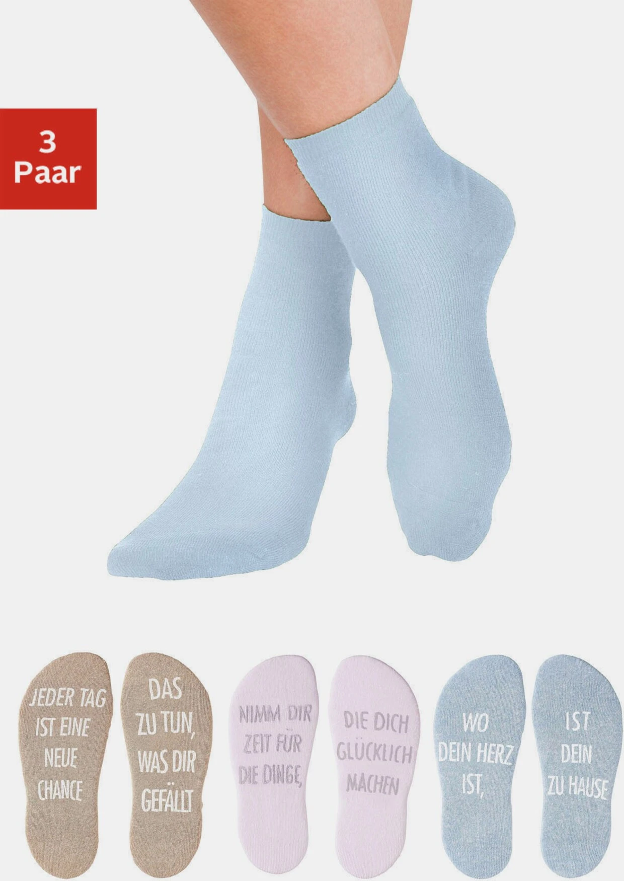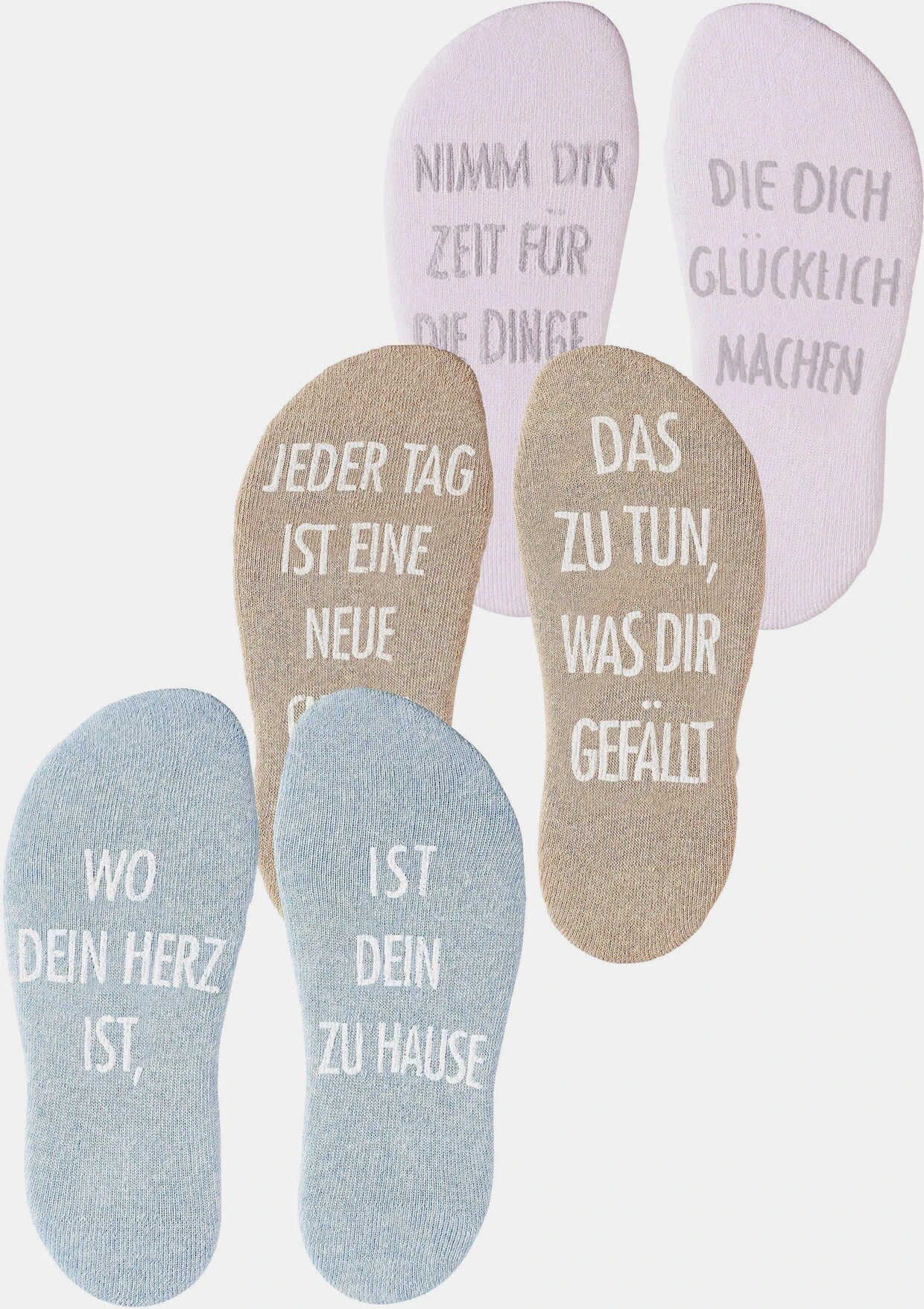 Der Tag fängt gut an mit den ABS-Kurzsocken von Arizona. Jedes Sockenpaar hat unter der Sohle einen lustigen Spruch. Obermaterial: 78% Baumwolle (Bio-Baumwolle), 20% Polyamid, 2% Elasthan