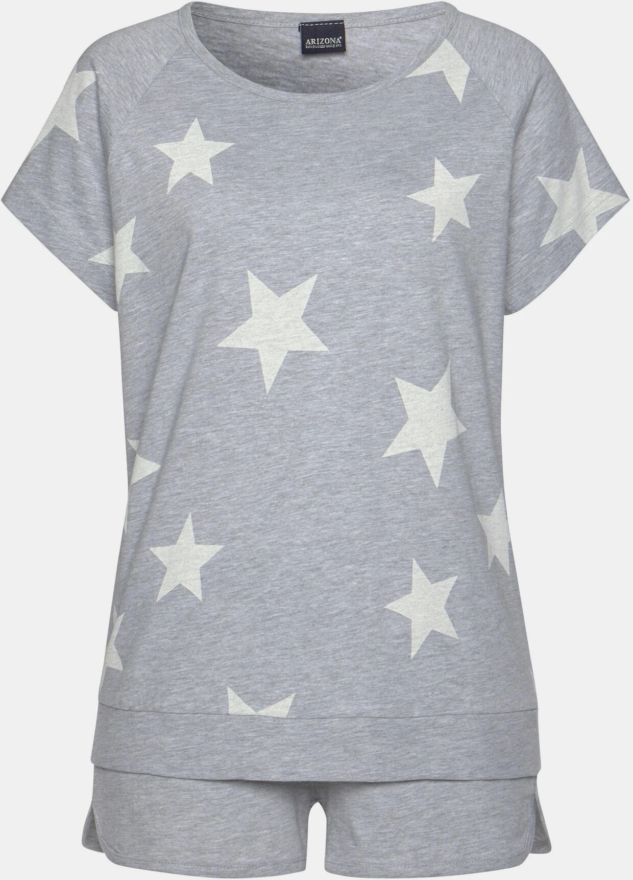 Der sportlich melierte Shorty im Doppelpack von Arizona beschert dir süße Träume! Das Schlafshirt hat kurze Raglanärmel, einen femininen Rundhalsausschnitt und elastische Bündchen – die kurze Schlafhose punktet mit elastischem Tunnelzugbund und paspelierten, leicht gerundeten Beinsäumen mit Seitenschlitzen. Der kurze Schlafanzug aus weicher Single-Jersey-Qualität ist mit hohem Baumwollanteil gearbeitet und trägt sich superangenehm auf der Haut. Auch an heißen Tagen der ideale Basic-Pyjama für erholsame Nächte – der melierte Shorty von Arizona! Aus 60% Baumwolle und 40% Polyester. Grau Melange 90% Baumwolle, 10% Polyester