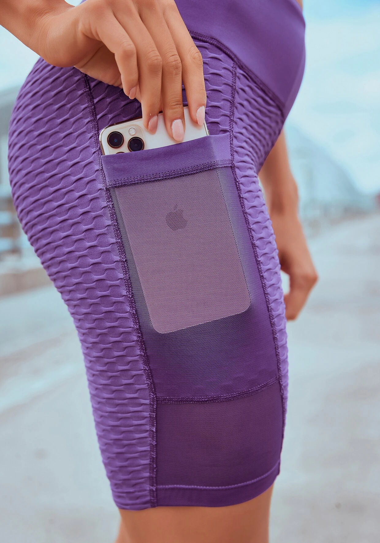 Funktions-Bikershorts in Wabenoptik mit breitem Bund mit innenliegender Tasche. An den Beinen seitlich mit Mesh-Einsätzen, links mit Handytasche. Aus 86% Polyester, 14% Elasthan.