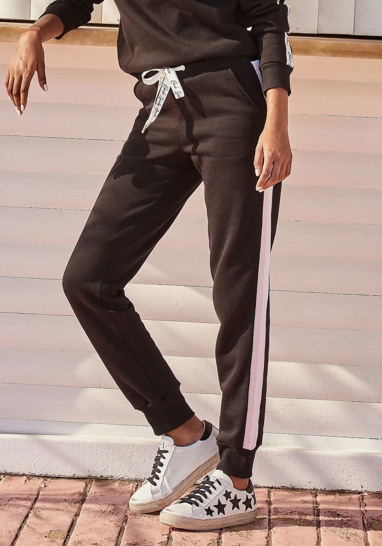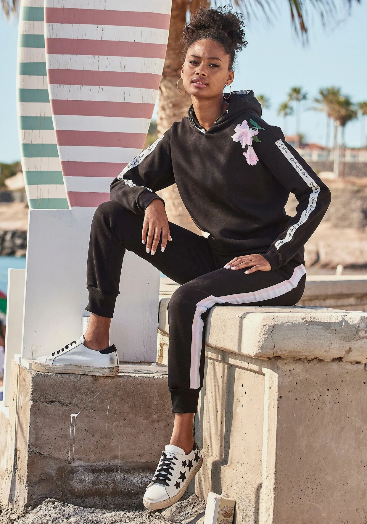 Sweathose von Bench. Bequeme Sweathose mit Tunnelzugbund und bedruckten Bindebändern. Breiter Streifen entlang der Beine. Seitliche Eingrifftaschen. Aus 50% Baumwolle (unterstützt Cotton made in Africa) 50% Polyester.