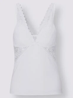 BH-Hemd von Nina von C. mit weichen Schalen. Mit edler, glänzender Spitze an den Cups und an den Schmuckträgern, die im Rücken verstellt werden können.