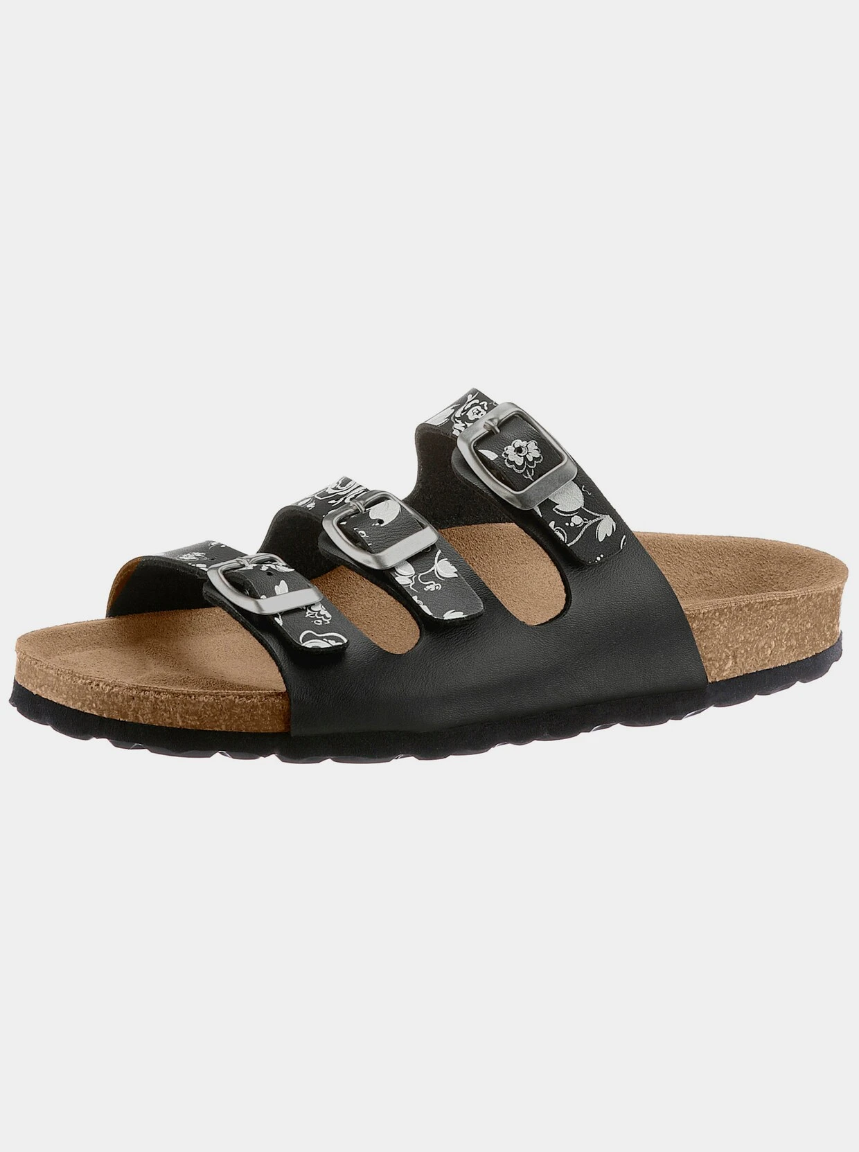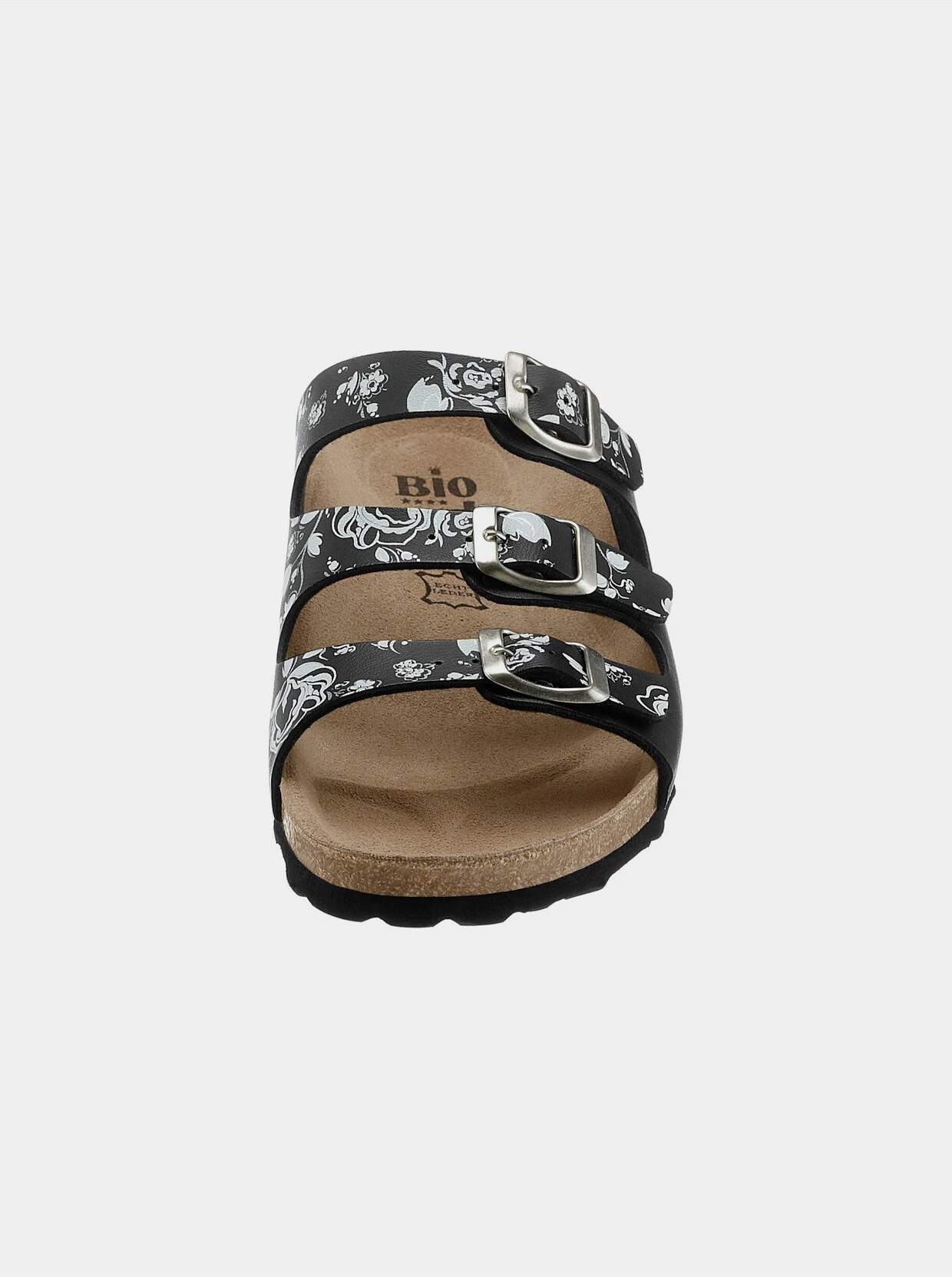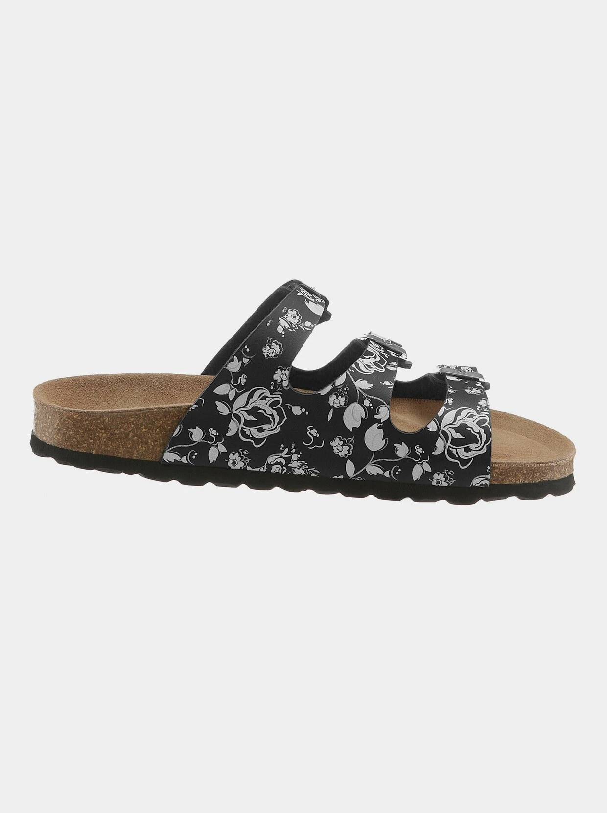 Von Bio Time: Pantolette mit 3 verstellbaren Schließen. Innensohle: Leder. Rutschhemmende EVA-Laufsohle mit ca. 30 mm Absatz. Weite F.