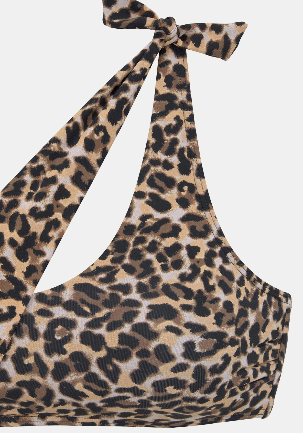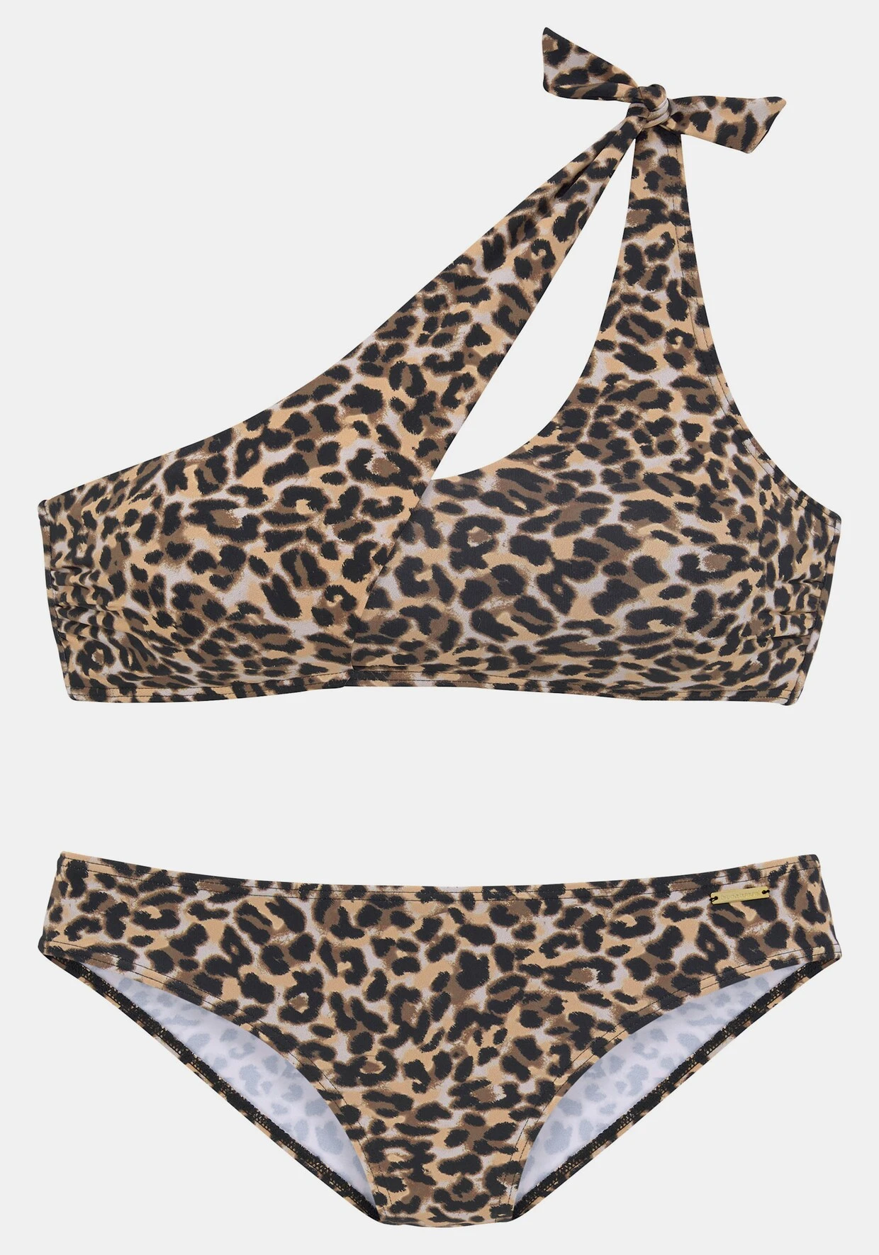 Bustierbikini von Bruno Banani. Im Animal-Look. Asymmetrisches One-shoulder-Design mit verstellbarem Träger mit Knotendetail. Cut-out am Dekolleté. Herausnehmbare Softcups. Hose in klassischer Form mit kleinem Metallemblem seitlich. Weiche Microfaserqualität.
