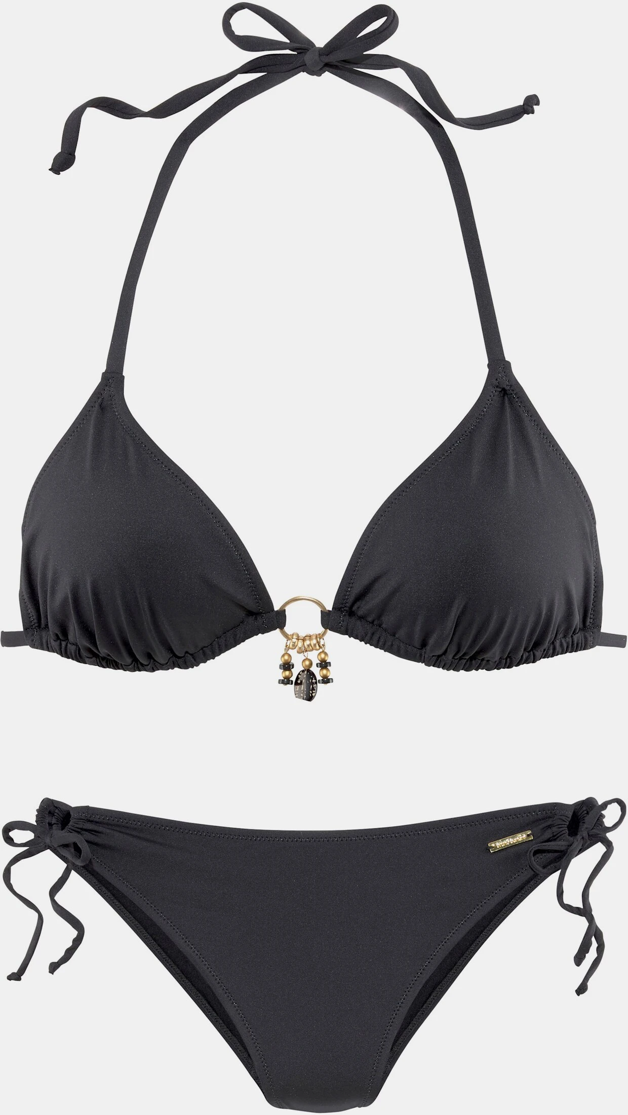 Unifarbener Triangel-Bikini von Bruno Banani. Dekoratives Schmuckelement zwischen den Cups. Top mit Neckholder sowie im Rücken zum Binden. Badeslip in knapper Passform mit seitlichen Bindebändern. Weiche Microfaser.