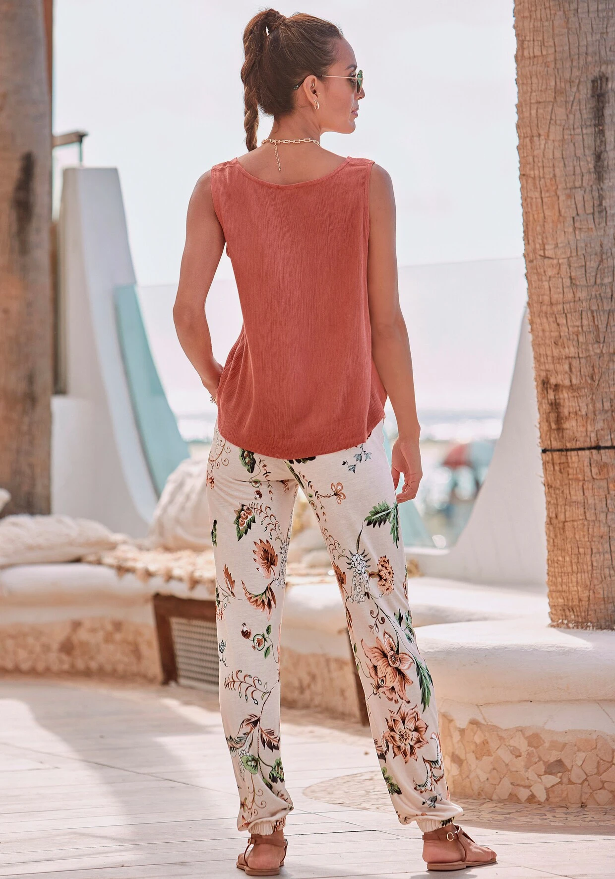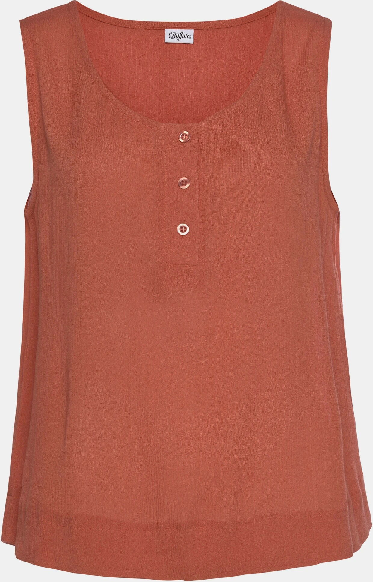 Elegantes Blusentop mit Rundkragen von Buffalo. Breite Tanktopträger, eine kurze Knopfleiste und ein gerundeter Saumabschluss für modernen Style. Vielseitig kombinierbar und ideal für diverse Anlässe. Aus weicher Viskose.