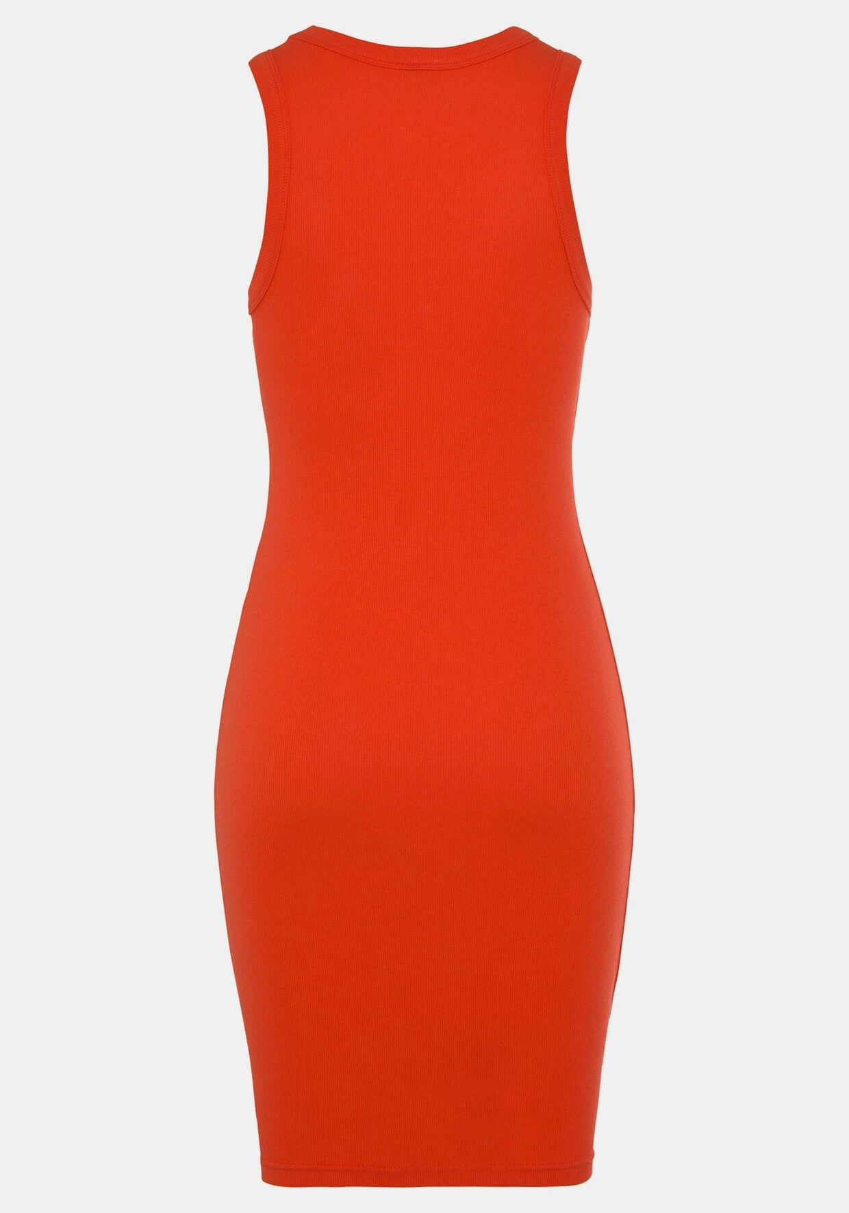 Sehr schmal geschnittenes Minikleid von Buffalo. Unifarbenes, schlichtes Design mit Rundhalsausschnitt. Passt für viele verschiedene Styles. Trageangenehme, elastische Rippware.