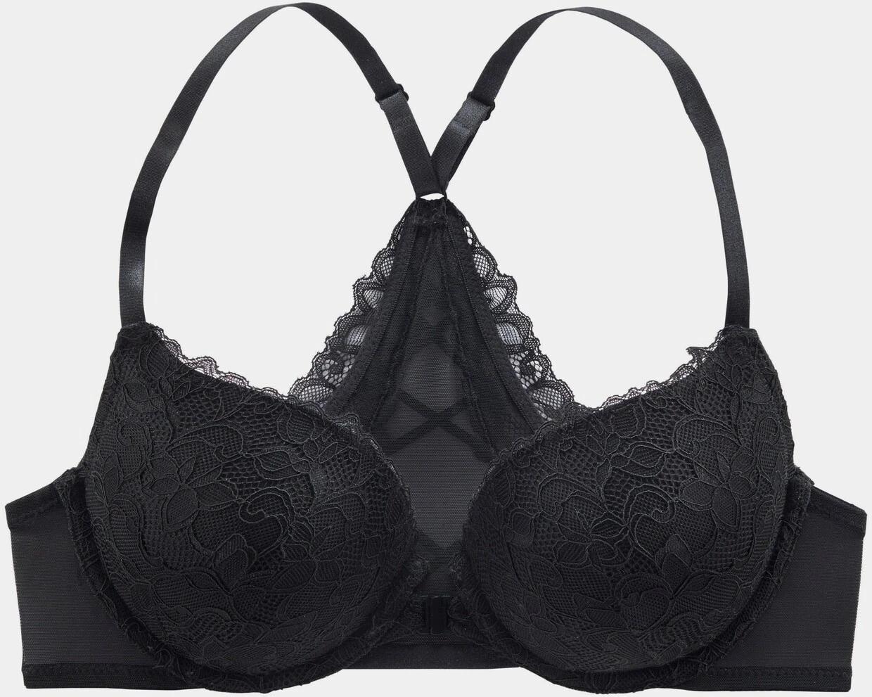 Mit Vorderverschluss und fest integrierten Kissen. Cups aus Spitze. Der BH ist aus 90% Polyamid, 10% Elasthan. BHs sind nicht trocknergeeignet, da die Versteller und Ringe durch die Hitze beschädigt werden und brechen. Sexy Dessous. Spitzen-Dessous. Romantische Dessous. Verspielte Dessous.