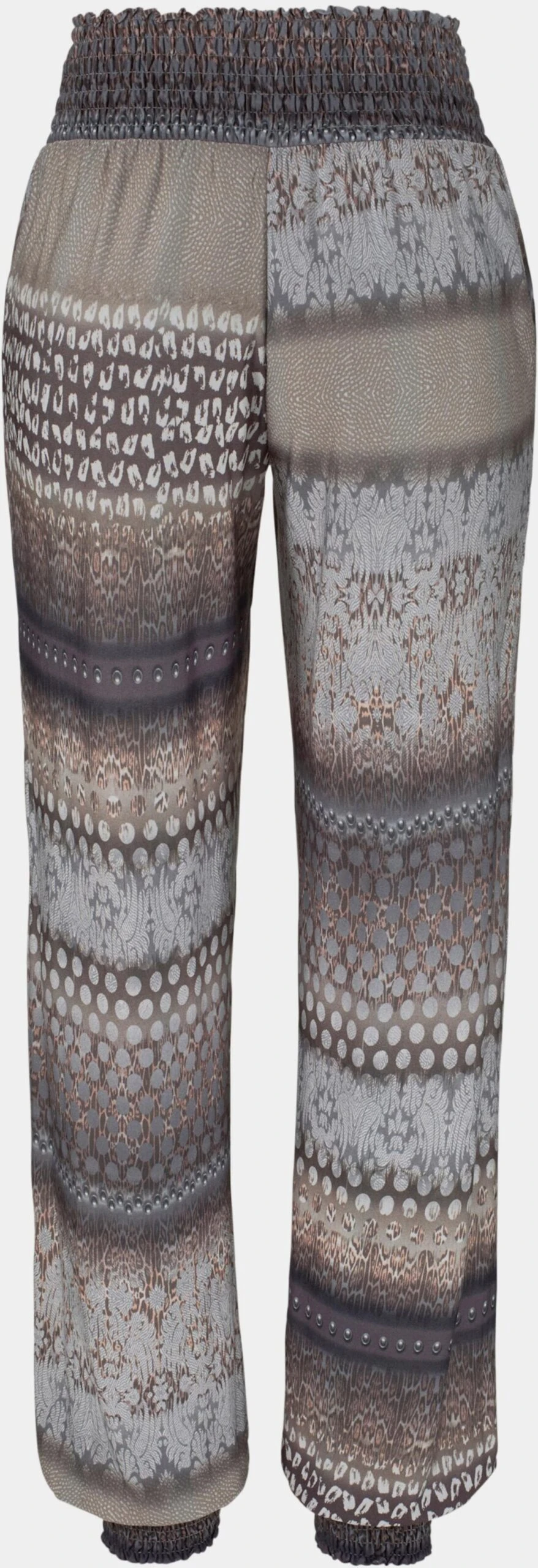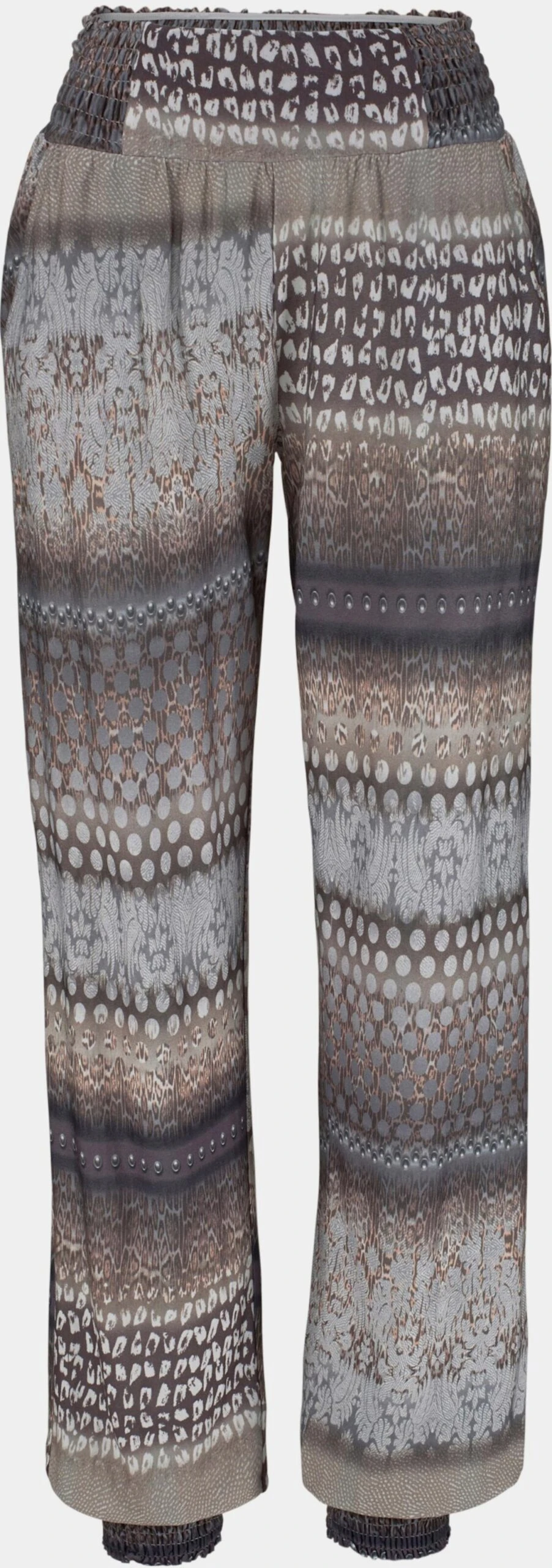 Bedruckte Stoffhose für warme Tage, Sommerhose aus angenehmer Viskoseware, Strandhose mit Smokbund am Beinabschluss, Druckhose mit seitlichen Eingrifftaschen, Breiter Bund mit Smok hinten