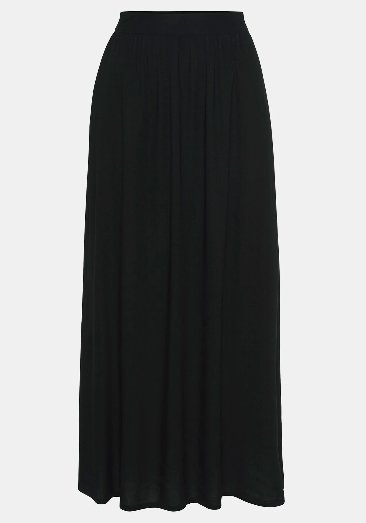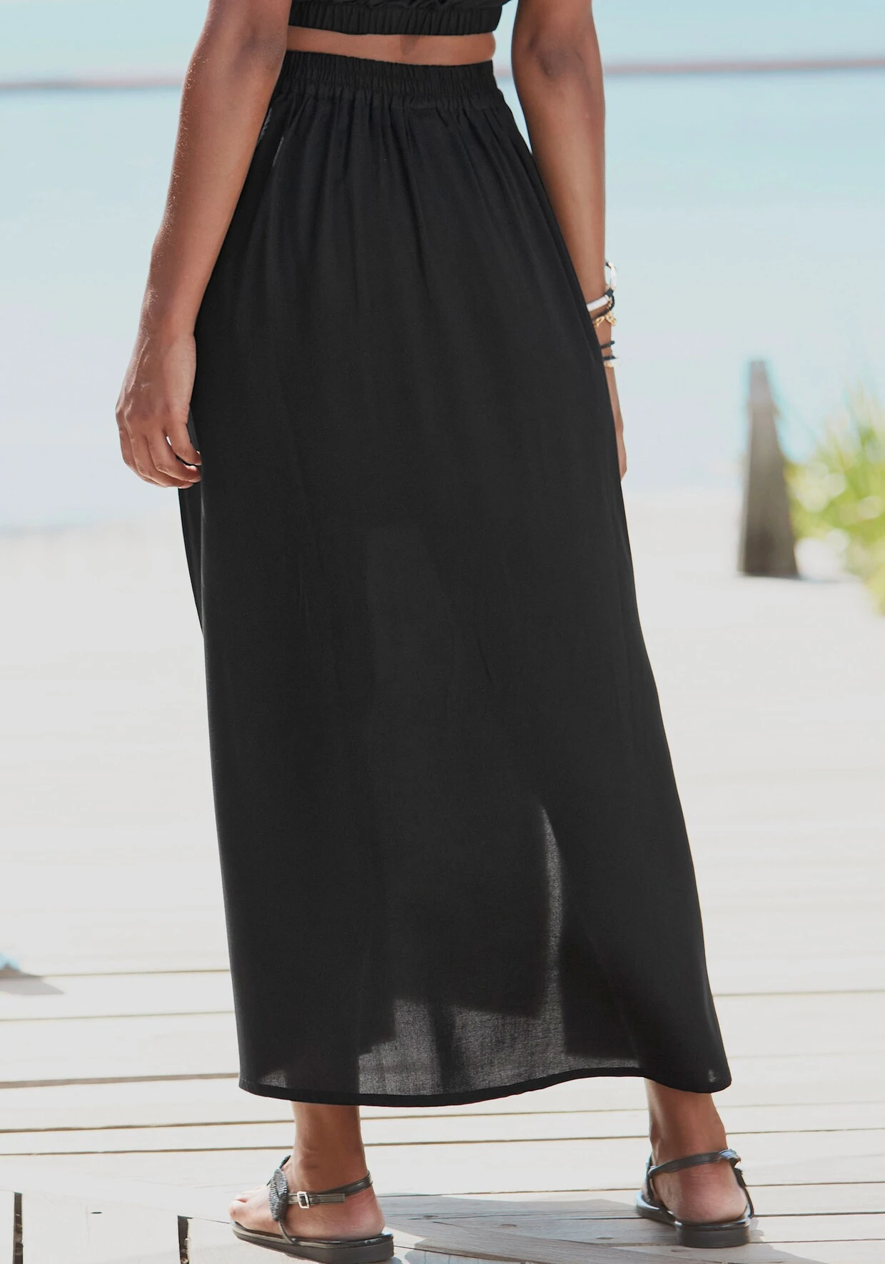 Unifarbener Maxirock von Lascana. Bund vorn glatt, hinten mit Gummizug. Langer Schlitz seitlich. Gerader Saumabschluss. Für viele Gelegenheiten. Weich schwingende Viskose.