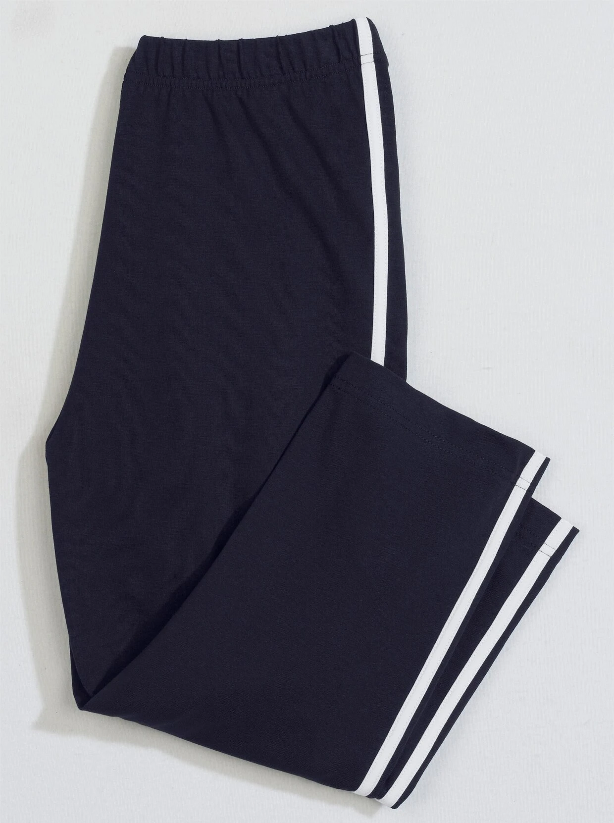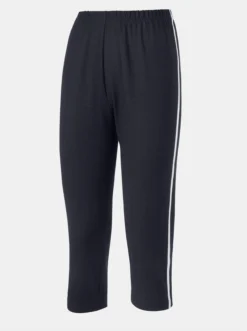Das Schöne an der Capri-Leggings sind die kontrastfarbenen Paspeln entlang der Seitennähte, die nicht nur dekorativ wirken, sondern auch optisch strecken. Mit Rundum-Dehnbund.