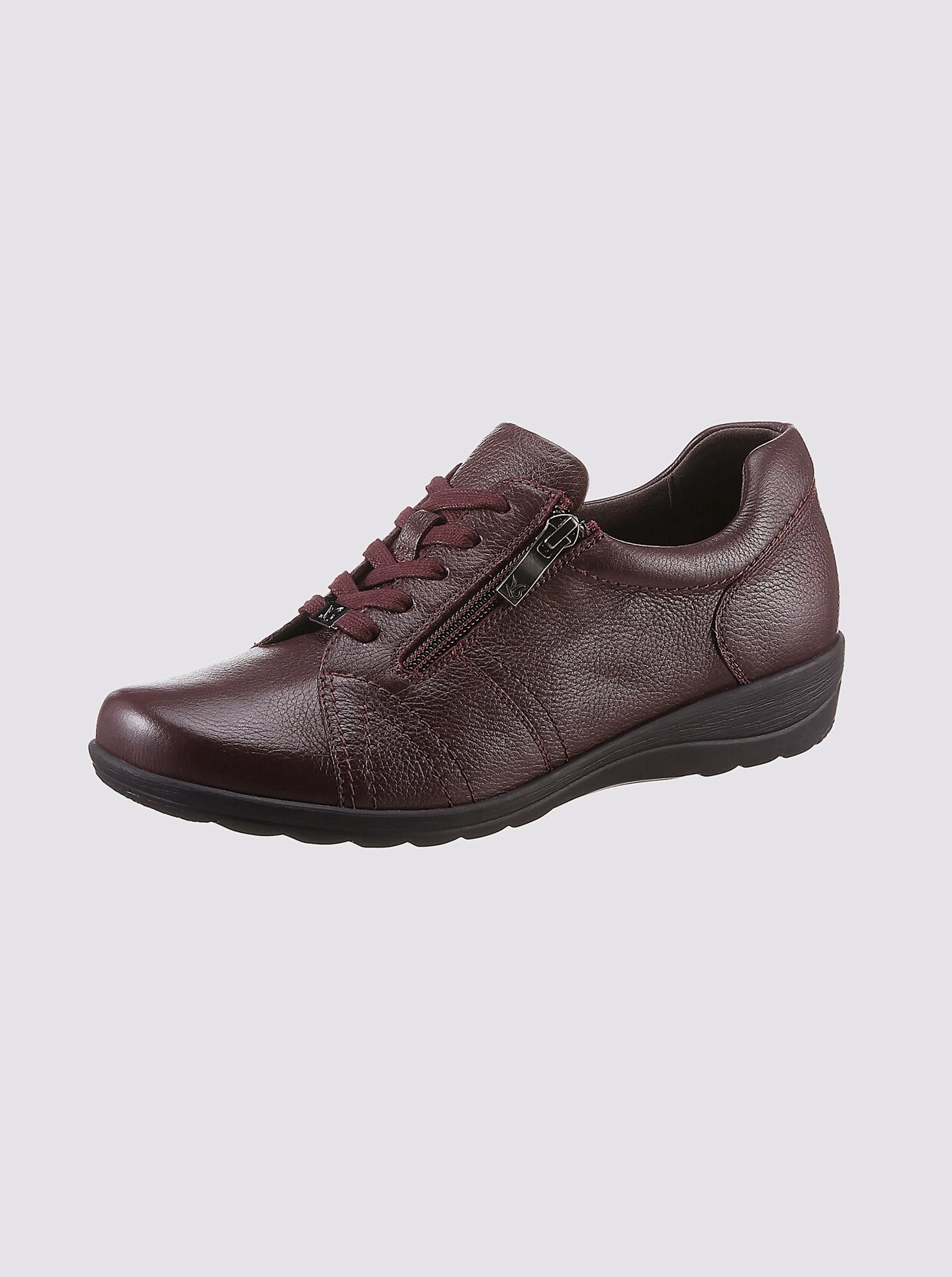 Mit dem super komfortablen Schnürschuh von Caprice wird jeder Schritt zu einem Vergnügen! Patentierte On-Air-Sohle mit trittdämpfender und klimaregulierender Wirkung. Obermaterial aus Glattleder, innen aus Leder-Imitat und Leder. Seitlicher Reißverschluss. Wechselfußbett. Super flexible TR-Laufsohle mit ca. 35 mm Absatz. Weite H für kräftige Füße.