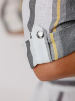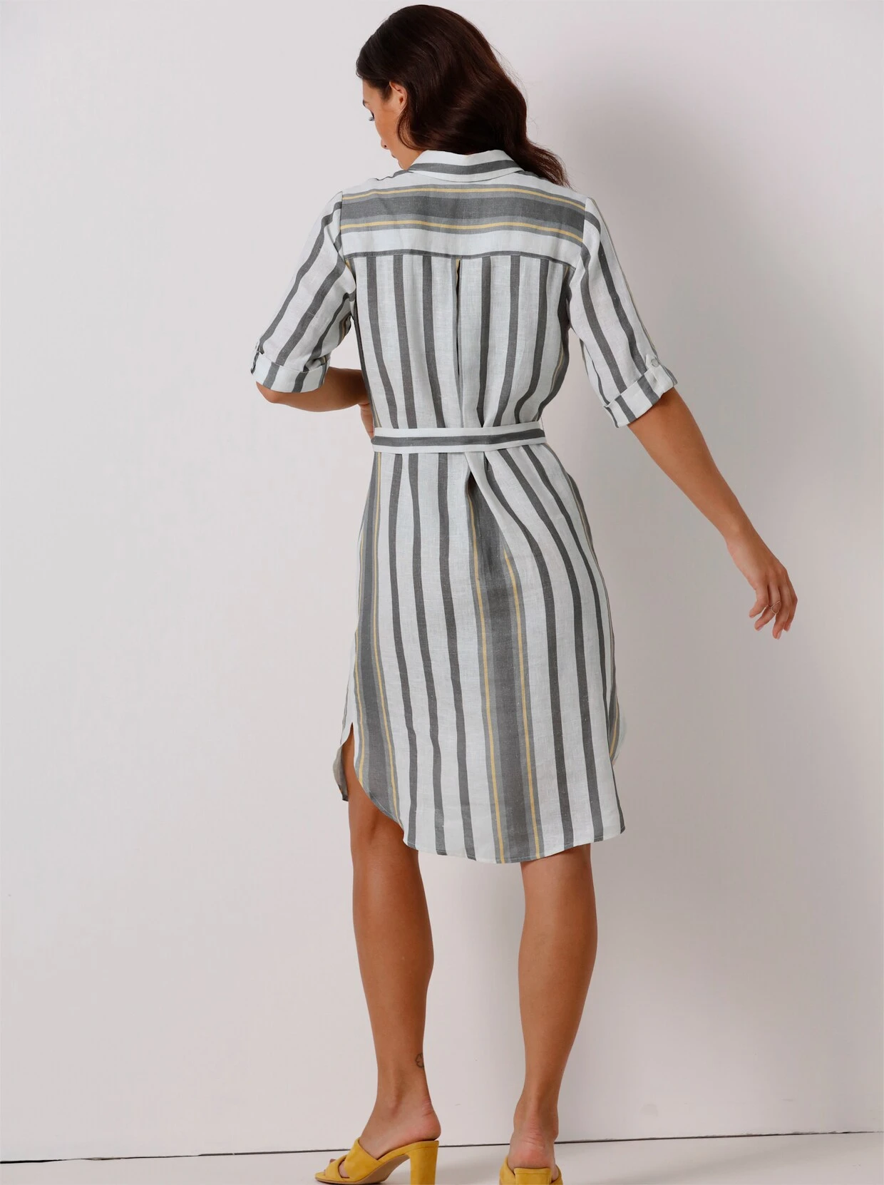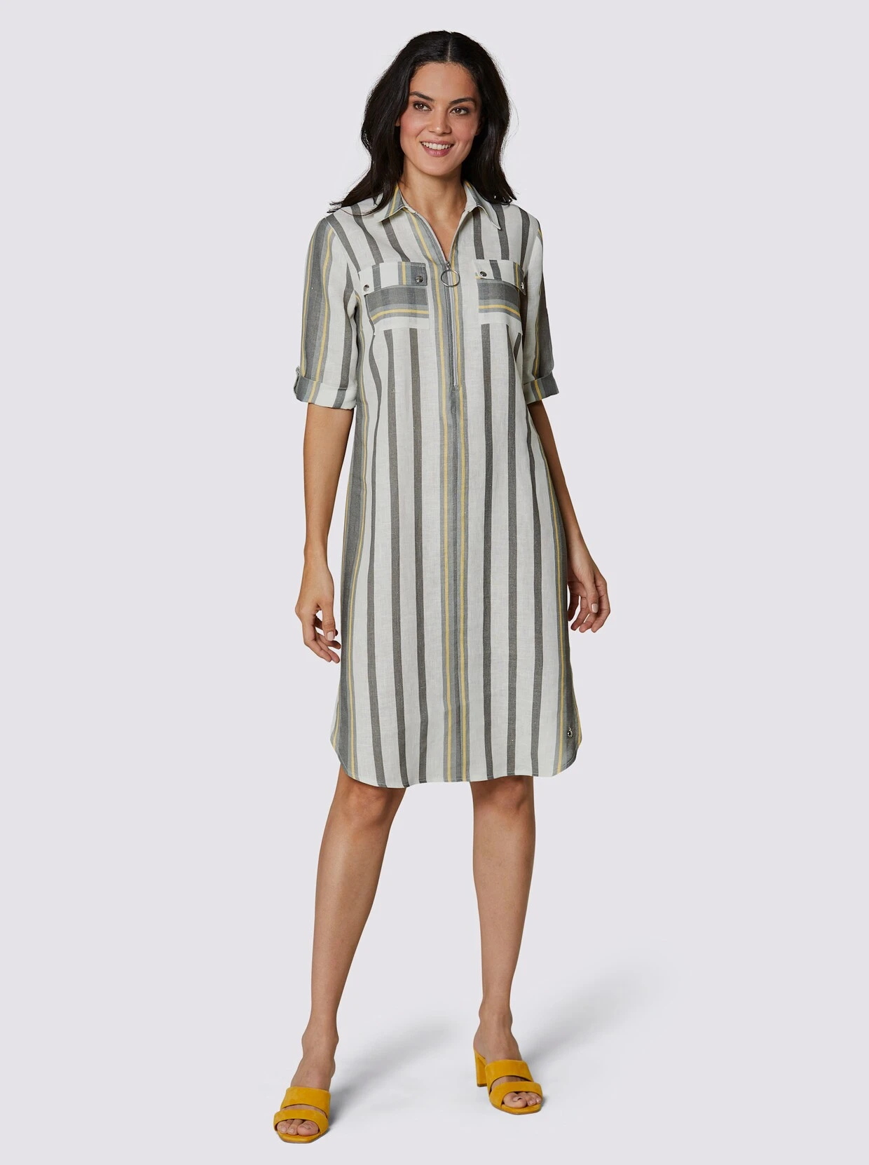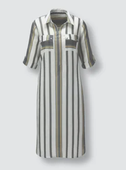 Creation L Premium Leinen-Hemdblusenkleid In Weiß-steingrau-gestreift