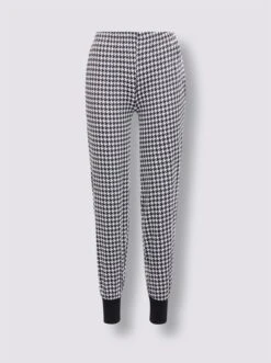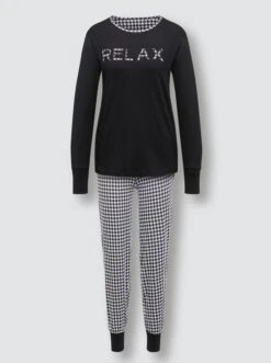 Tragegenuss pur verspricht der Modal-Schlafanzug durch die unvergleichlich weiche, elastische Qualität mit Klima-Komfort-Effekt, da atmungsaktiv und feuchtigkeitsausgleichend. Der dezente Glanz unterstreicht die edle Ausstrahlung. Oberteil mit angesagtem Schriftzug vorne und Paspel am Rundhals-Ausschnitt. Das Hahnentritt-Muster findet sich auf der langen Dehnbund-Hose mit zwei seitlichen Taschen und einfarbigen, elastischen Bündchen wieder. Single-Jersey.