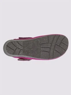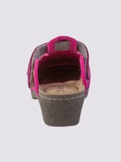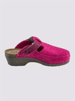 Clog aus Filz, mit dekorativem Glitzerriegel. Mit Klettverschluss zur Weitenregulierung. Weiche Innensohle aus Leder. Rutschhemmende Laufsohle. Absatzhöhe ca. 50 mm. Weite G.
