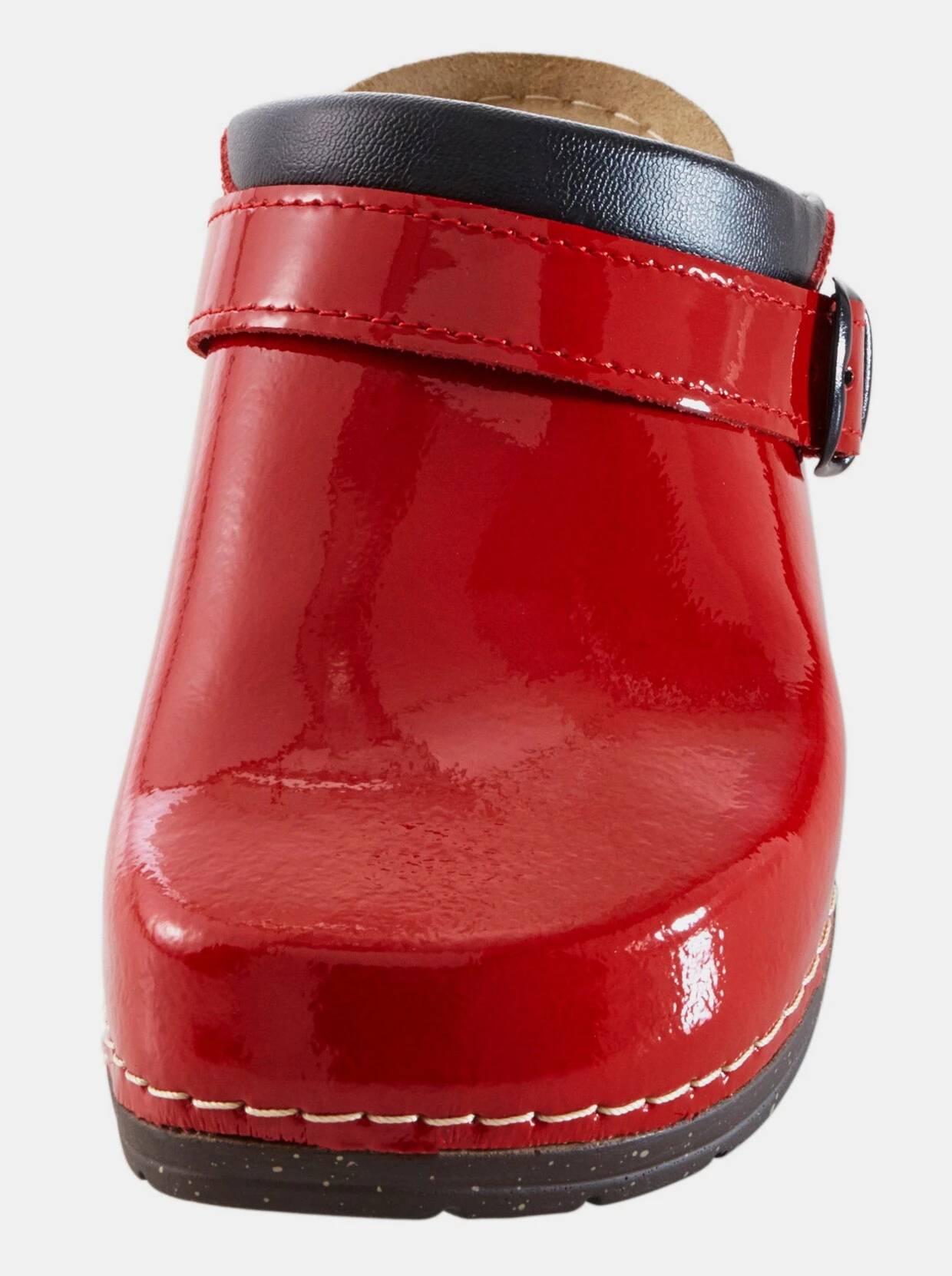 Clog Aus Rind-Lackleder. Weite G: mehr Volumen im Zehen-, Ballen- und Ristbereich. Anatomisch geformtes Fußbett. Innensohle: Leder. Absatz mit Korkbezug, Höhe ca. 80 mm.
