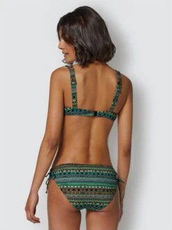 Bikini im trendigen Ethno-Style. Oberteil mit Doppelträgern, Bügeln und herausnehmbaren Cups. Höschen mit seitlichen Bändern zum Raffen.