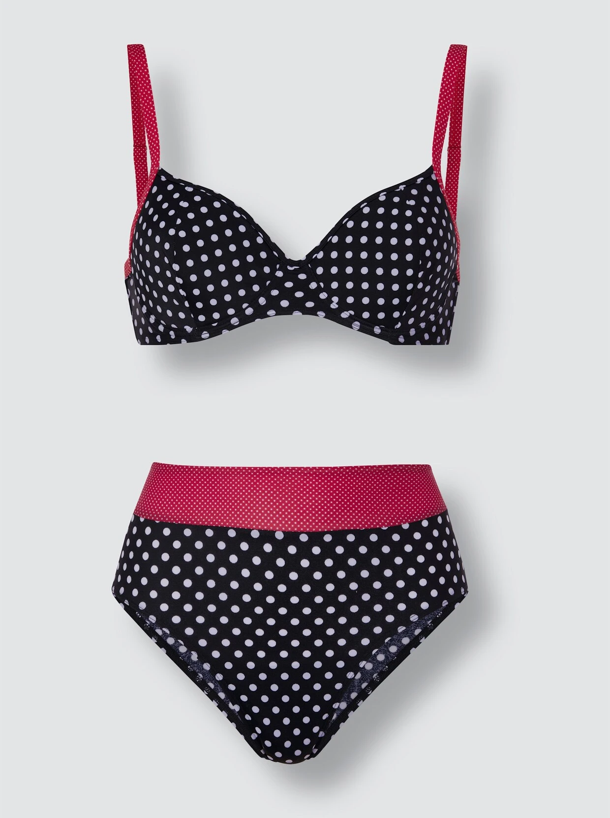 Damit legen Sie eine modische Punktlandung hin! Bikini im supersüßen Dessin. Softcups mit Bügeln. Die Träger lassen sich in der Länge verstellen.