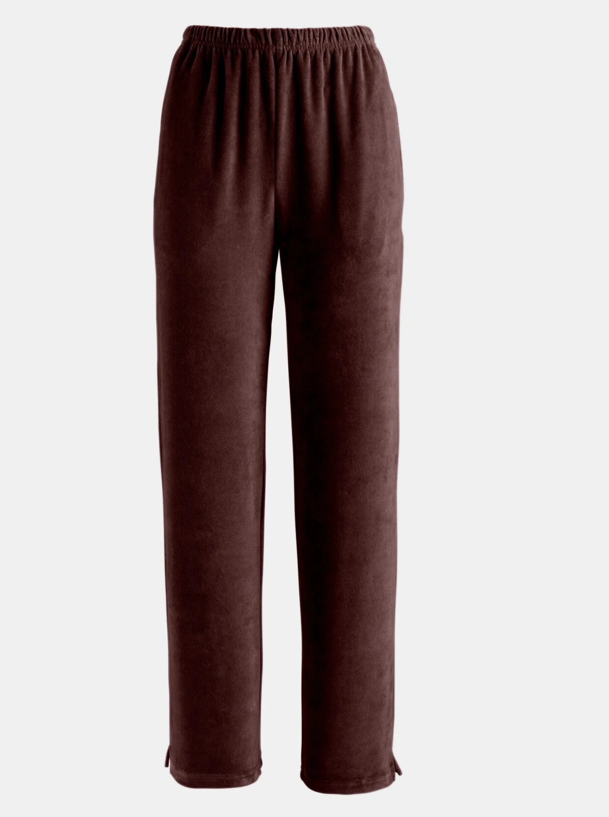 Hose in samtweicher Nicki-Qualität. Mit Dehnbund. 2 Taschen. Schlitze am Bein.