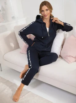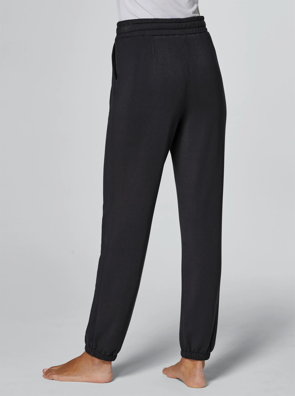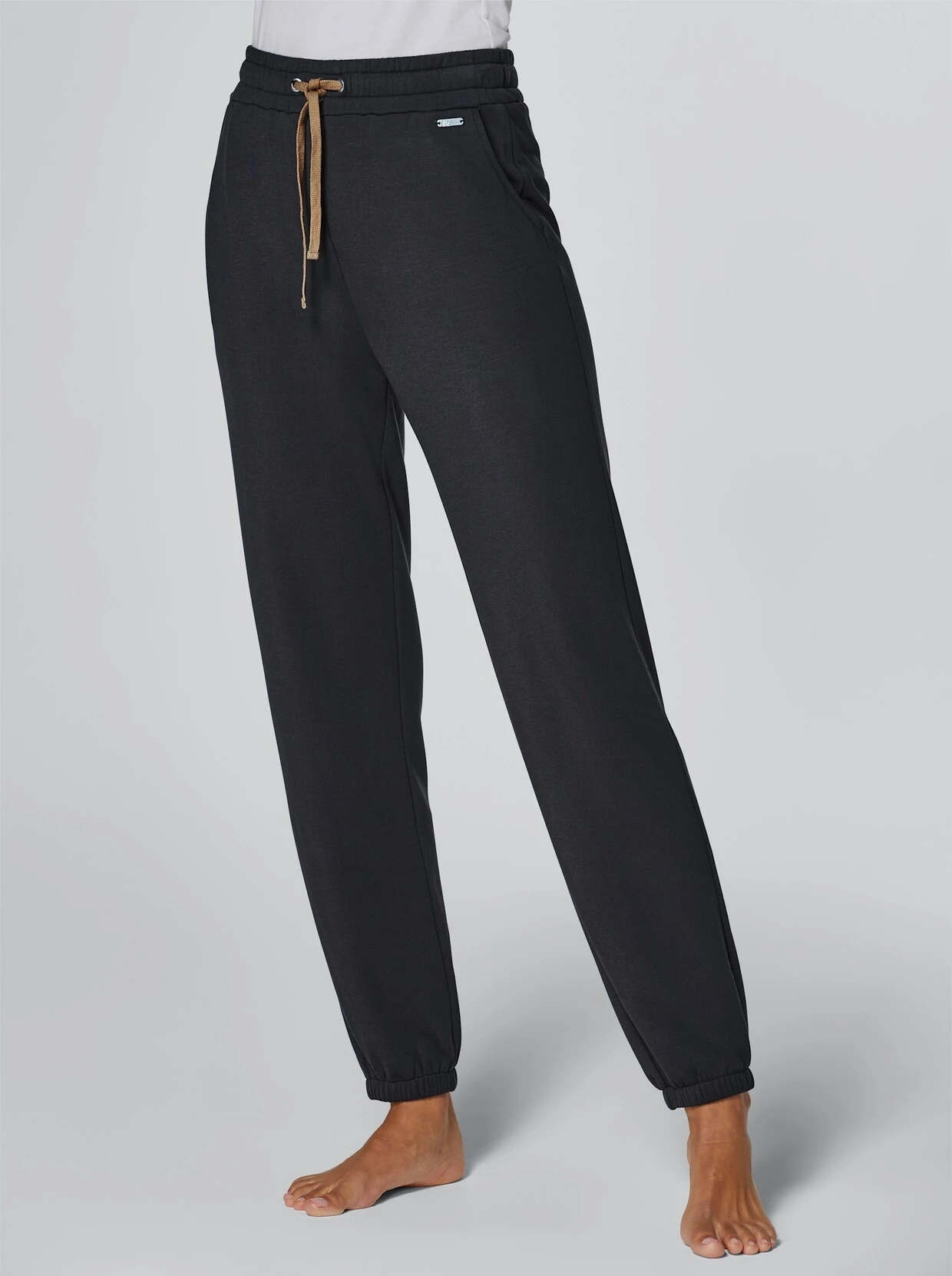 Hose von feel good in angenehm weicher, innen wärmend angerauter Sweat-Qualität. Komfortabler Dehnbund mit Tunnelzug und kontrastfarbigem Bindeband. Logo-Patch aus Metall vorne. 2 seitliche Taschen. Schmaler, elastischer Beinabschluss.