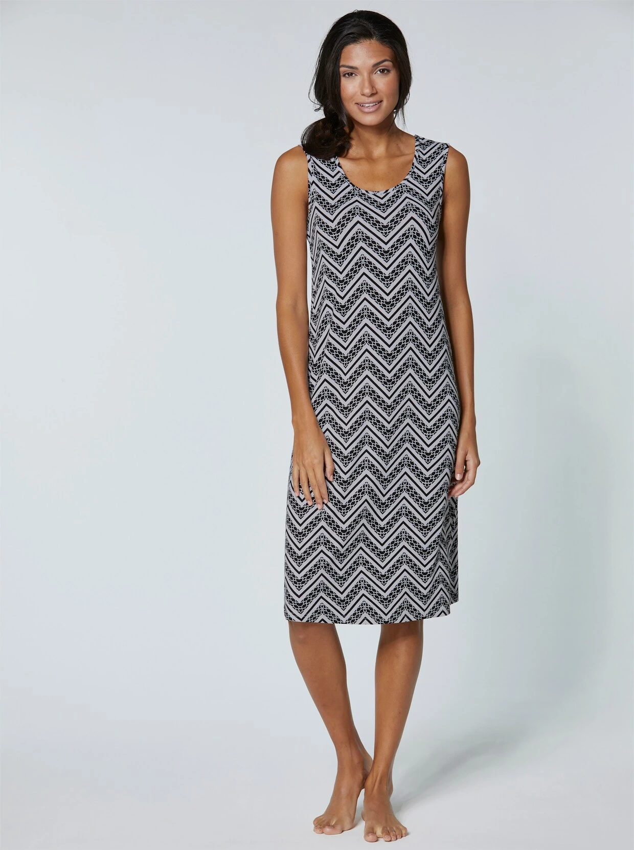 Damit sind Sie ganz schön auf Zack! Effektvoll gemustertes Sommerkleid aus softweichem Single-Jersey. Mit Rundhals-Ausschnitt und komfortablen, breiten Trägern.