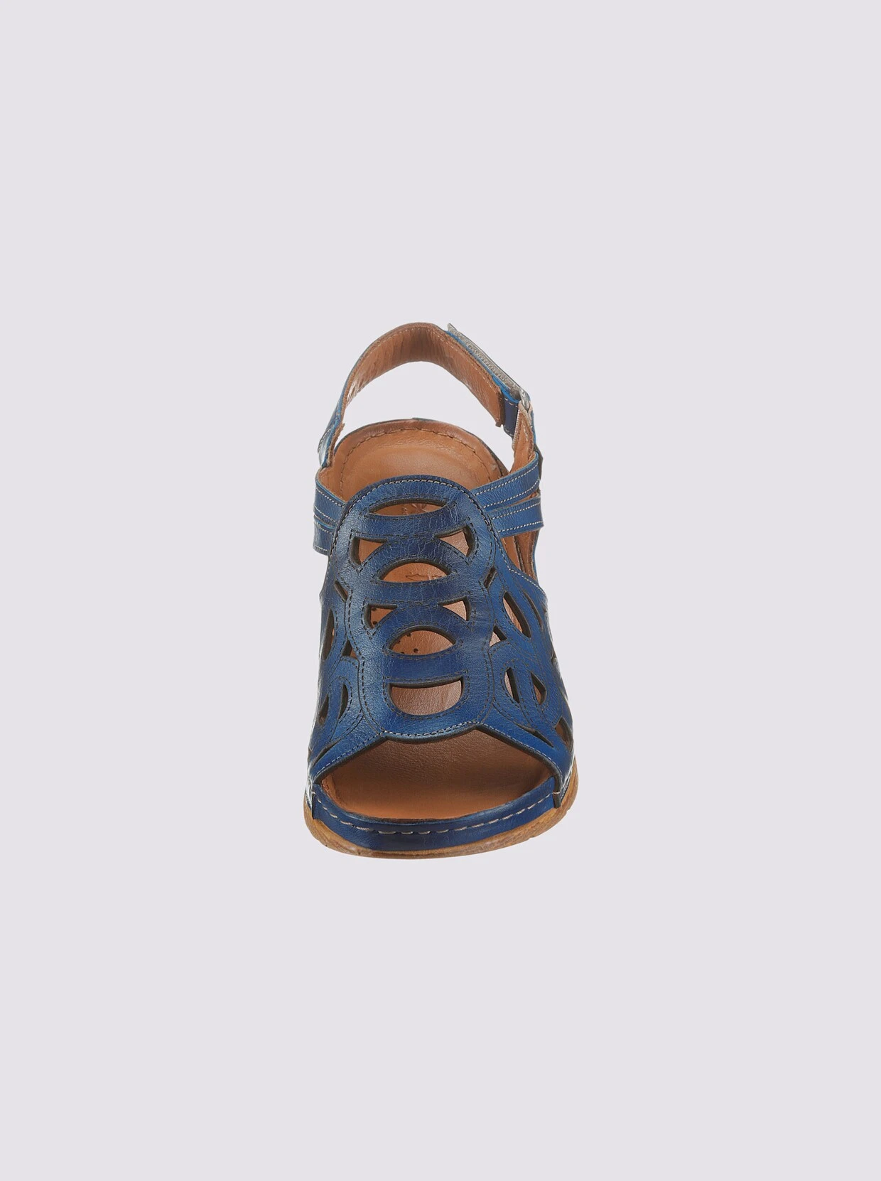 Und der Sommer kann kommen … Sandalette von Gemini in luftig leichter und komfortabler Verarbeitung. Obermaterial aus Glattleder, innen auch komplett Leder. Weich gepolstert. Mit Klettverschluss. PU-Laufsohle mit ca. 40 mm Absatz. Weite G.