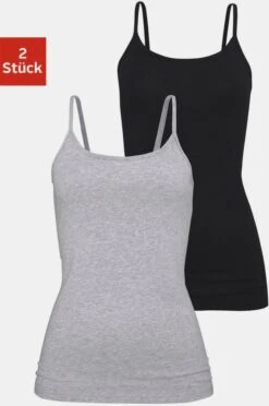 Tolles Spaghettitop von H.I.S im 2er-Pack. Flache Einfassungen am Rundhalsausschnitt. Aus angenehmer Baumwoll-Stretchqualität.