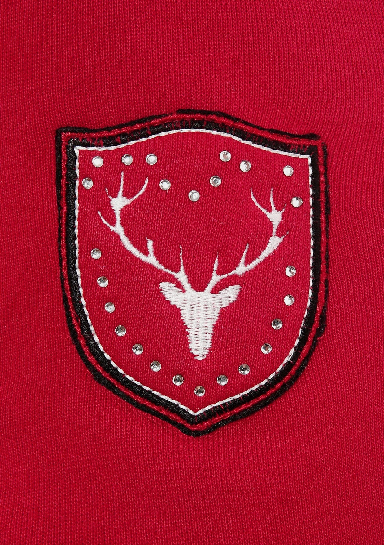 Elastische Jersey Qualität, Ungefüttert – Innenseite aufgeraut, Aufgesetzte Taschen in Herzform, Spitzenborten und Karoelemente, Funkelndes Glitzerelement am Rückenteil