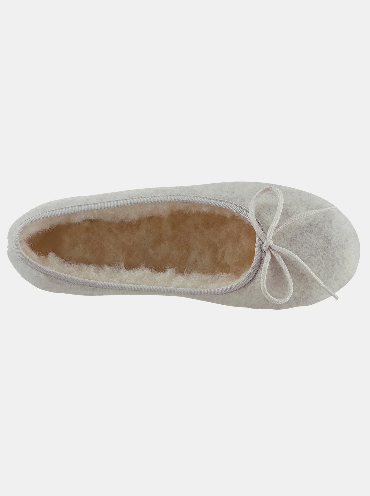 Ballerina aus Filz mit dekorativer Schleife und hochwertiger Schurwoll-Innenausstattung. Rutschhemmende Gummi-Laufsohle mit ca. 20 mm Absatz. Weite G.
