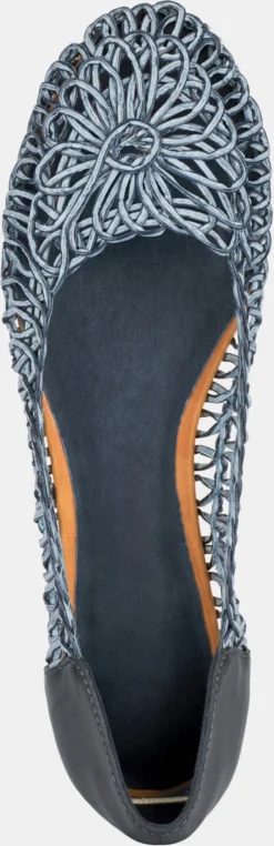 Ballerina Modischer Blickfang mit filigranem Flecht-Dessin. Aus hochwertigem Synthetik in Nappa-Optik. Futter: Synthetik. Absatzhöhe ca. 10 mm.