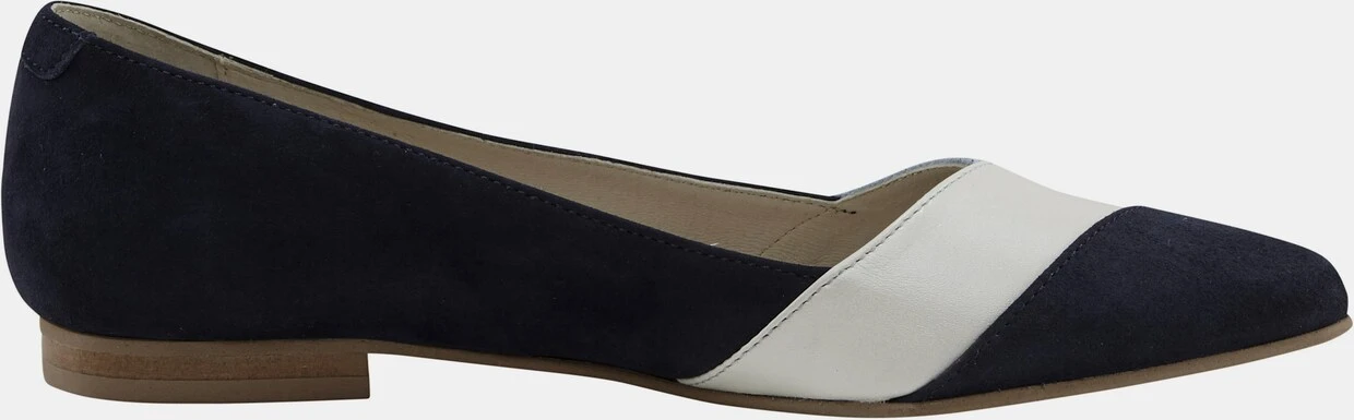 Ballerina Spielt gekonnt mit Farb- und Materialkontrasten! Hochwertiges Ziegen-Nappa- und -Veloursleder, teils matt, teils in Glanz-Optik. Futter: Leder. Absatzhöhe ca. 15 mm.
