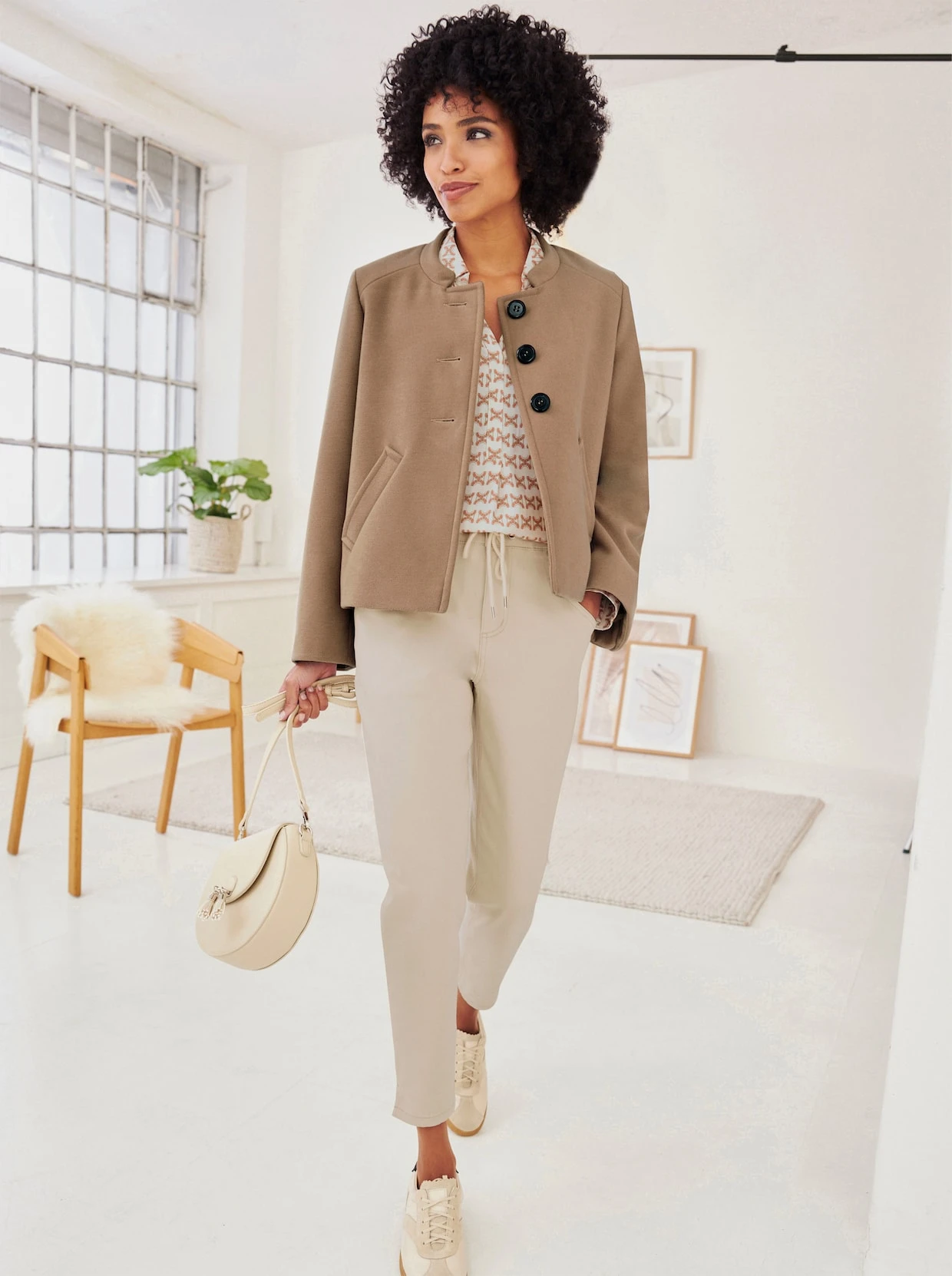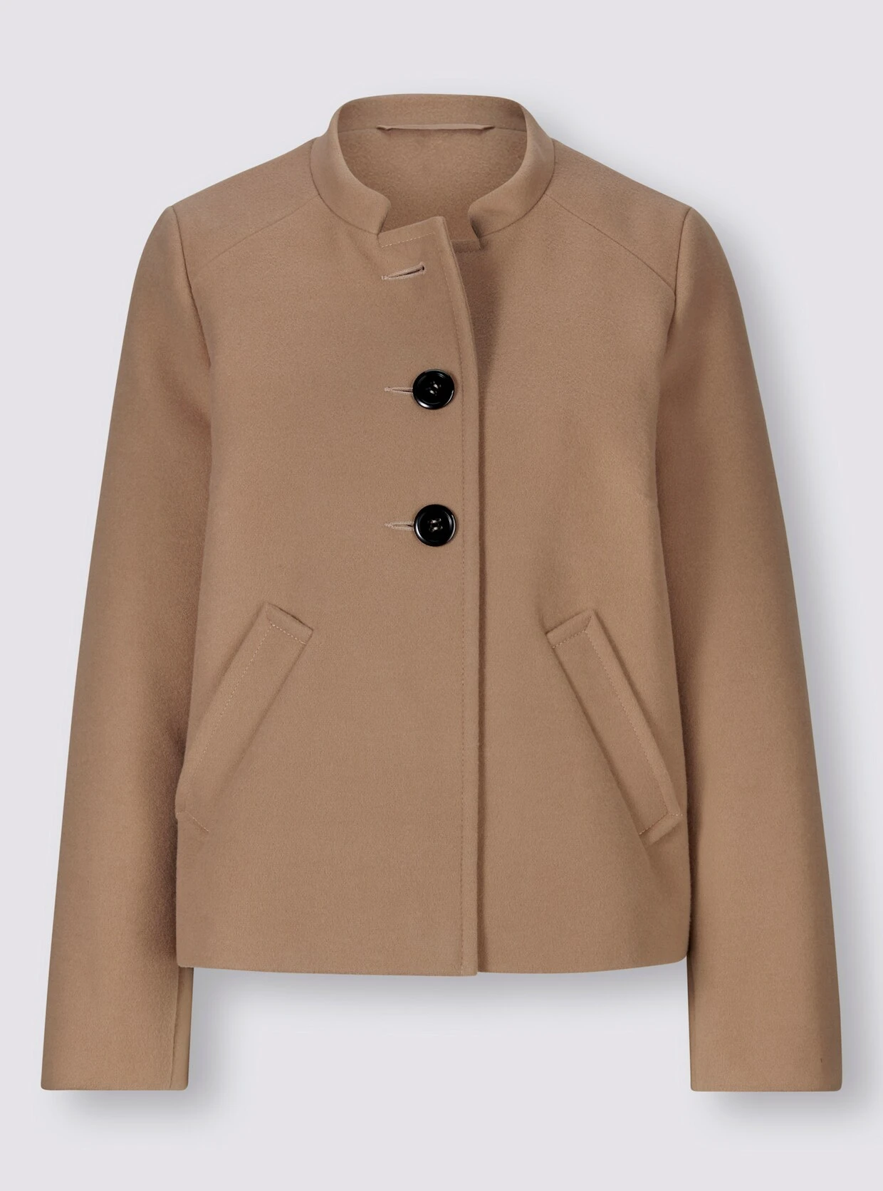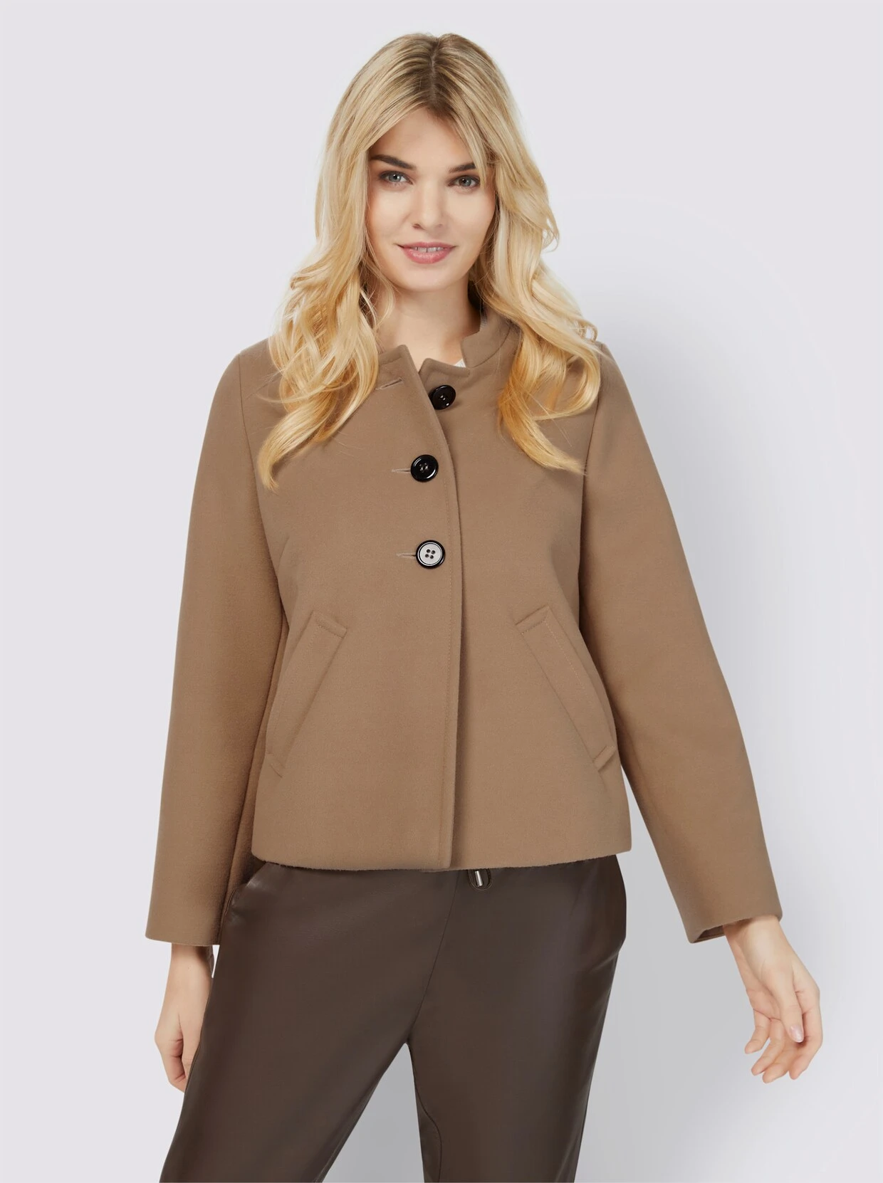 Blazer Up-to-date in weicher Flauschware und ausgestellter A-Form. Eleganter 1-Knopf-Verschluss, Stehkragen und Langarm.