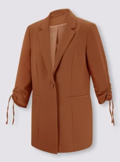 Blazer In angesagter Longform. Mit optisch streckendem Reverskragen und formgebenden Teilungsnähten. 3/4-Ärmel mit Raffung. Schulterpolster für einen perfekten Sitz. Leicht gefüttert. Knopfverschluss Ton-in-Ton.