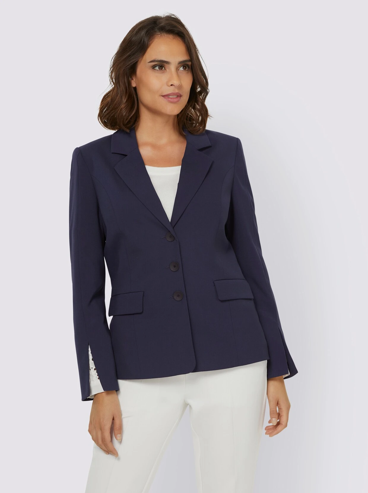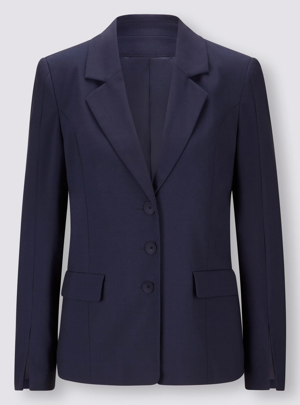 Blazer In angenehm leicht fallender Qualität. Figurschmeichelnd mit optisch streckendem Reverskragen und Wiener Nähten. Langarm mit Schlitz, Pattentaschen. In perfekter Passform dank Stretch.