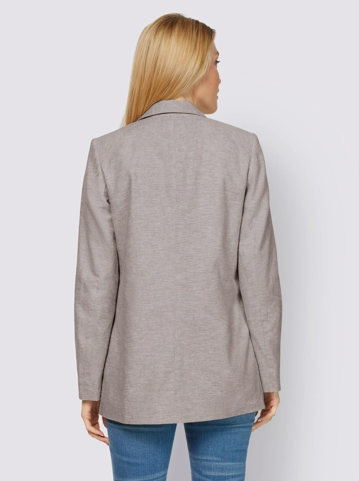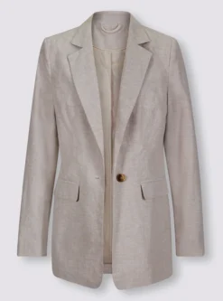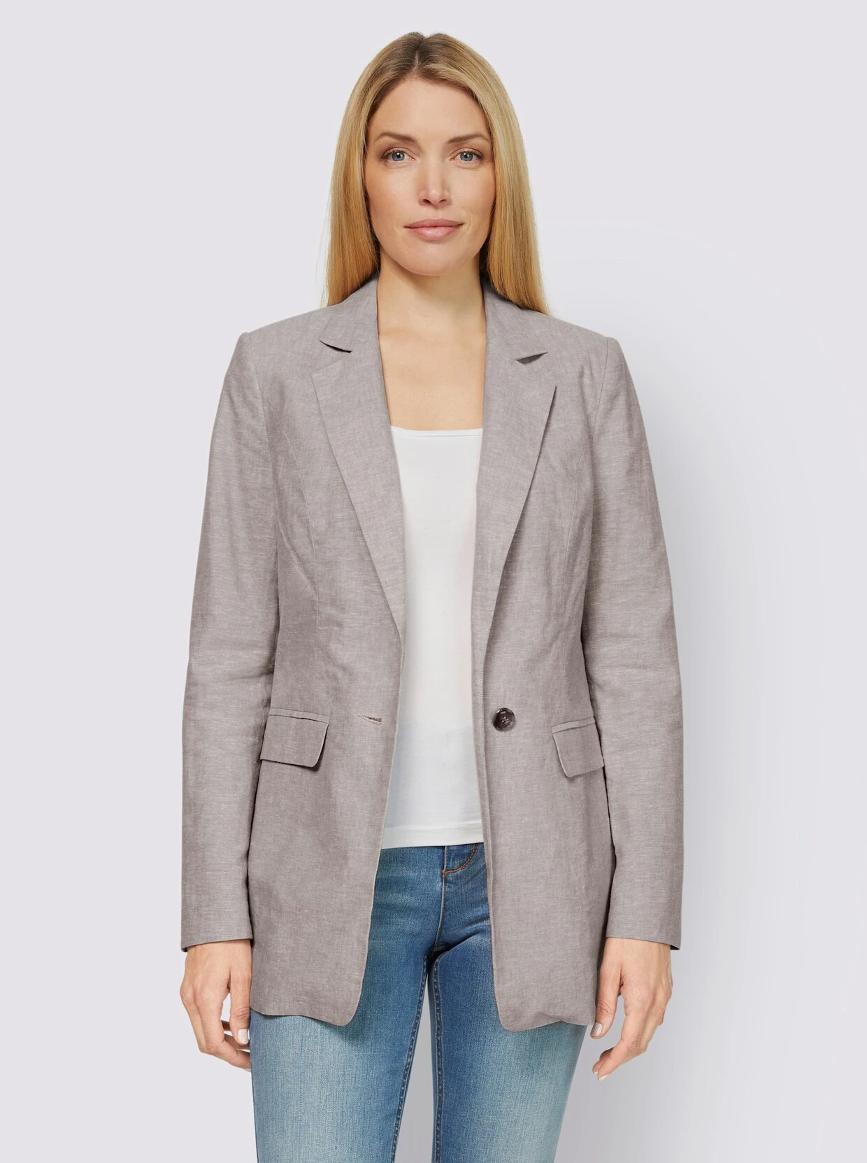 Blazer Angenehm leicht in hochwertiger Leinen-Viskose-Qualität. Mit Reverskragen, Knopfverschluss, paspelierten Pattentaschen und Langarm. Aufwendige Wiener Nähte für gute Passform.