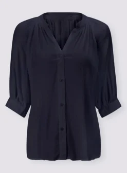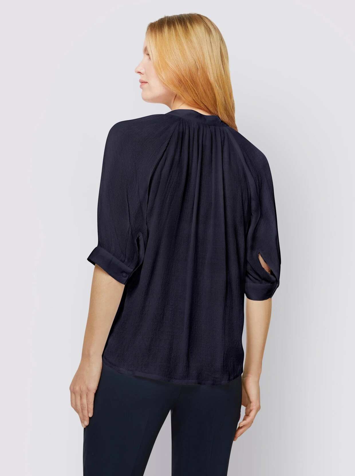 Bluse Lässig in locker figurumspielender Form. Aus angenehm leichter Strukturware. Mit Rundhalsausschnitt, Kurzarm und modisch abgerundetem Saum.