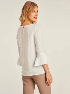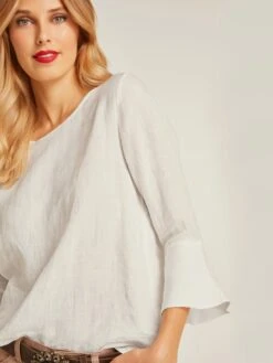 Bluse Mit Volants am Ärmel. Pflegeleichte Qualität. In lockerer, figurumspielender Form. Hinten mit Knopfverschluss.