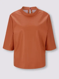 Bluse Top im Trend: hochwertiges Lederimitat in modischer Glanz-Optik! Gerade Form mit weitem Halbarm. Stehkragen im Nacken zu knöpfen.
