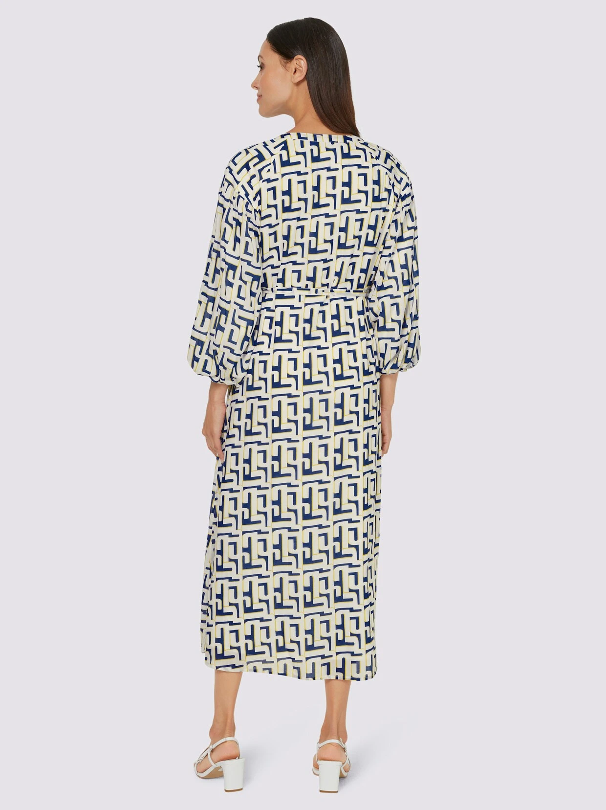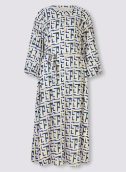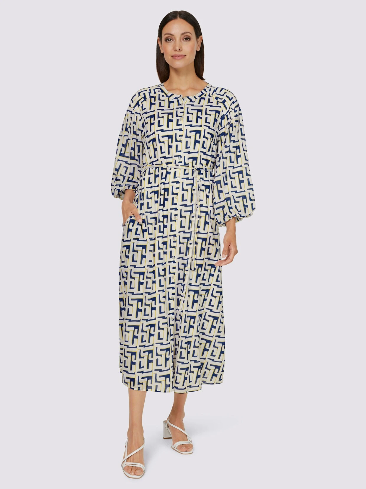 Druck-Kleid Wir beeindrucken mit grafischem Druck und modischen Glocken-Ärmeln in 3/4-Länge. Reines Modal, mit seidig-mattem Glanz. Angenehm weiche Trageeigenschaften; knitterarm & bügelleicht. Blickdicht durch Innenfutter. Mit Brustabnähern und seitlichen Nahttaschen. Durchgehende Knopfleiste. Mit Bindeband.