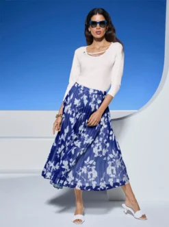Heine Druck-Rock In Royalblau-weiß-bedruckt