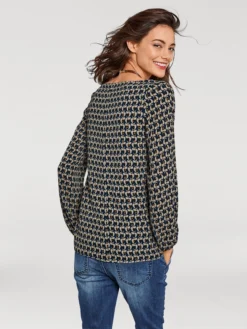 Druckbluse Trendstarker Print. Aus fein fließendem Material. Figurumspielende Form. Super Kombiteil für viele Gelegenheiten. Gummizug am Ärmelabschluss.