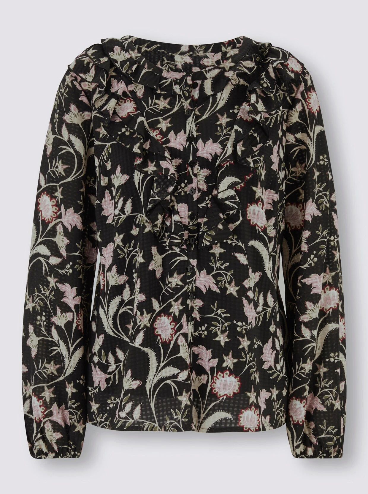 Druckbluse Mit separatem Top. Rüschen und floralem Muster. In leicht transparenter Qualität.